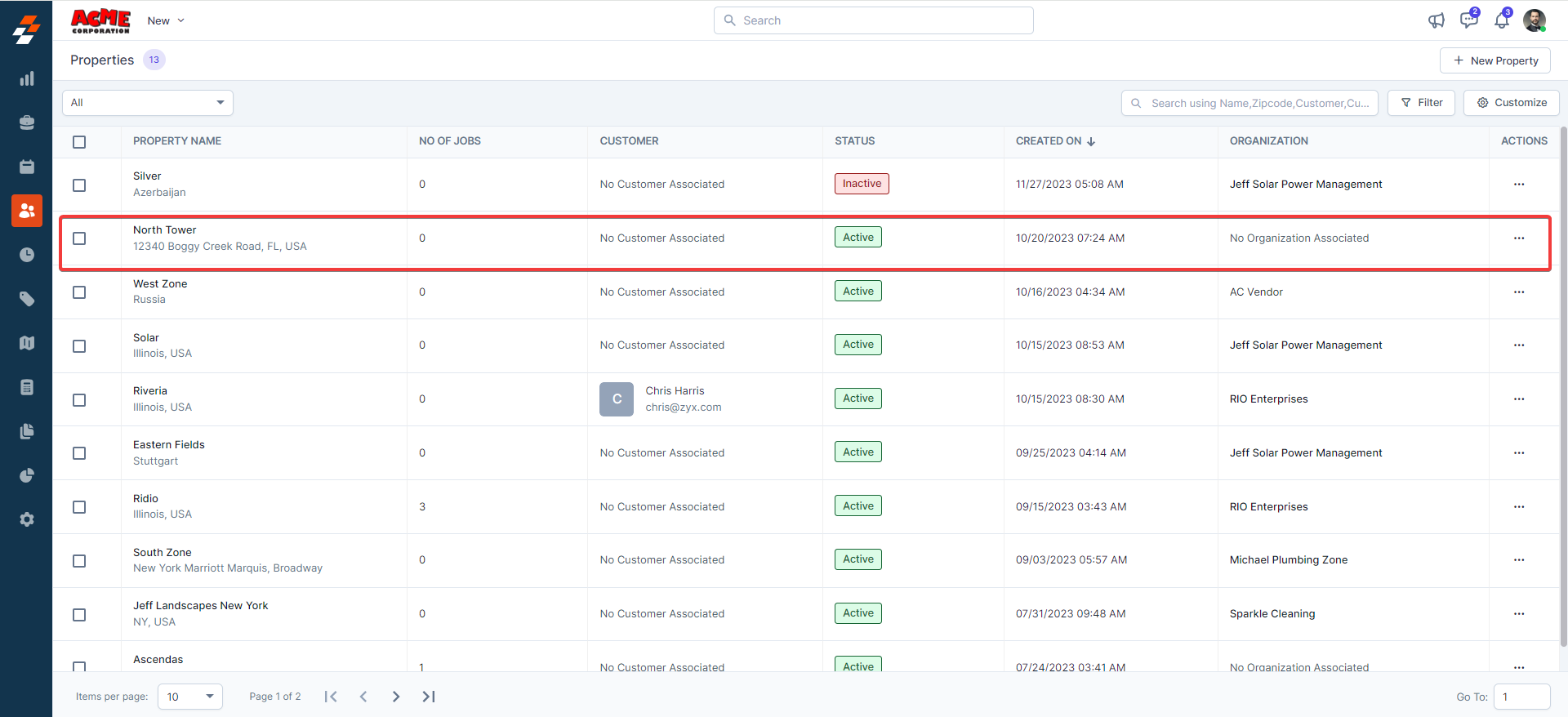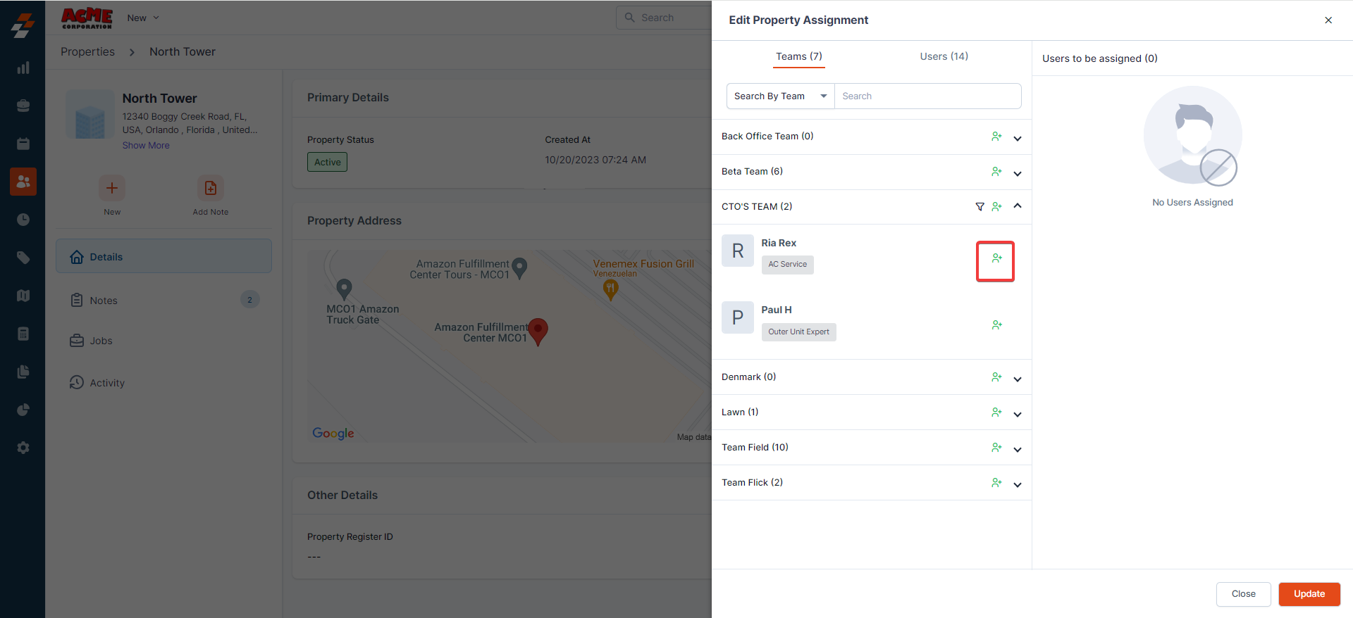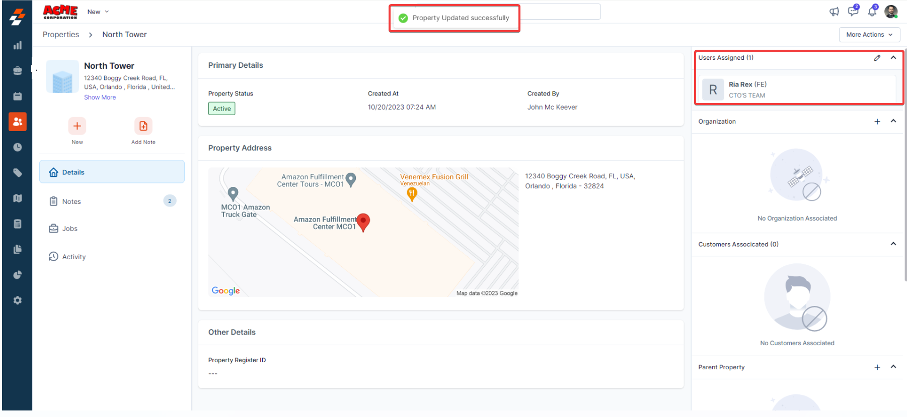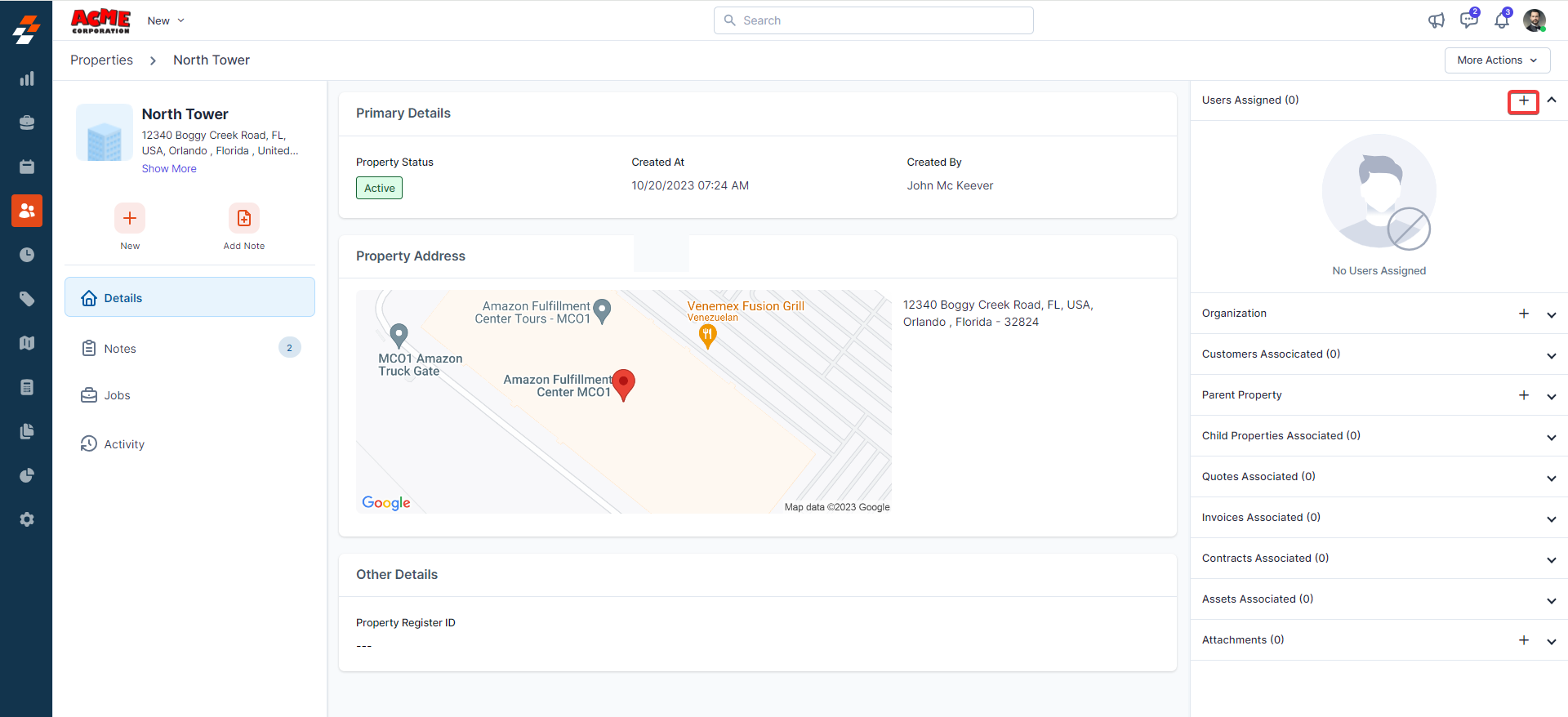 Below the quick actions bar, you can find the property details, notes, jobs, and activity.