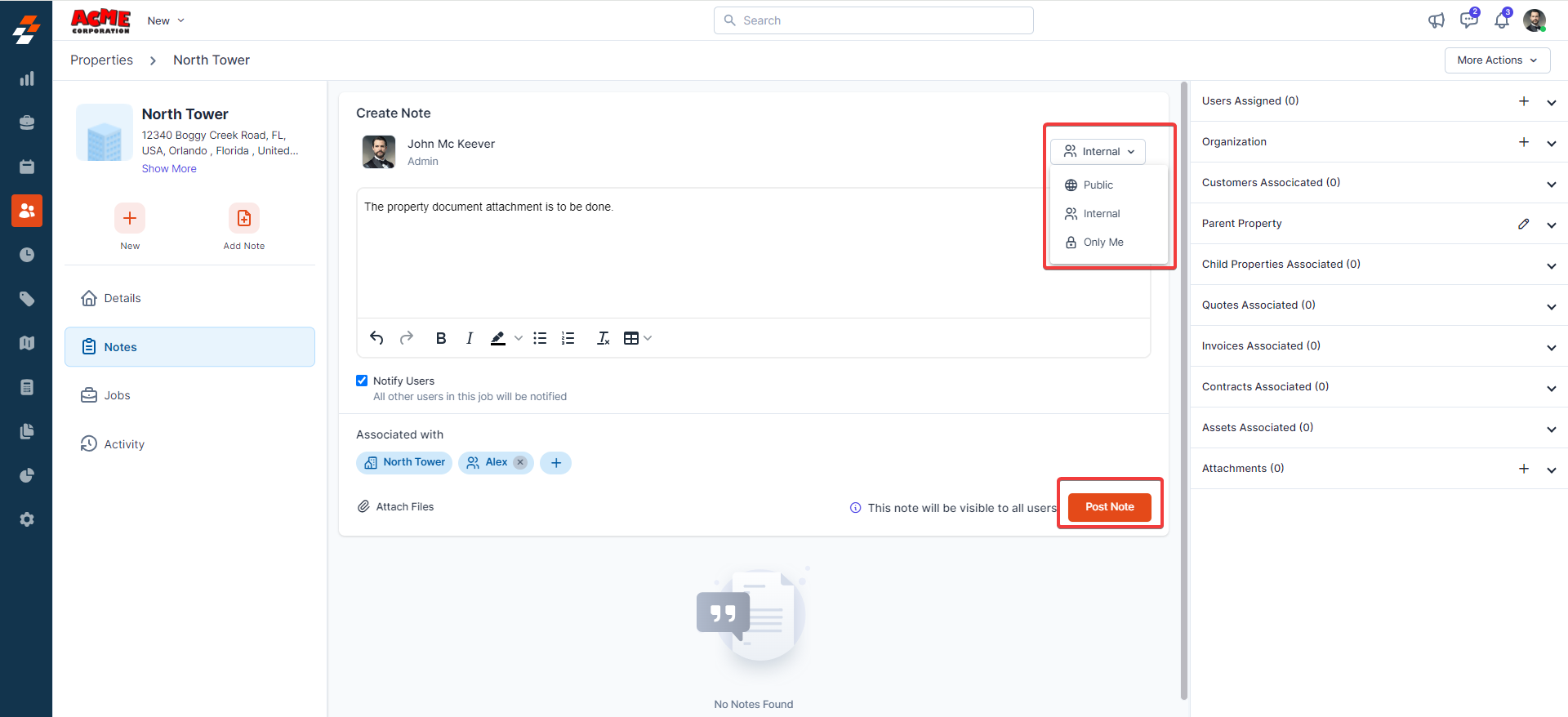 You can see the Property module associated with the notes. Click the "Post Note" button to post the notes.