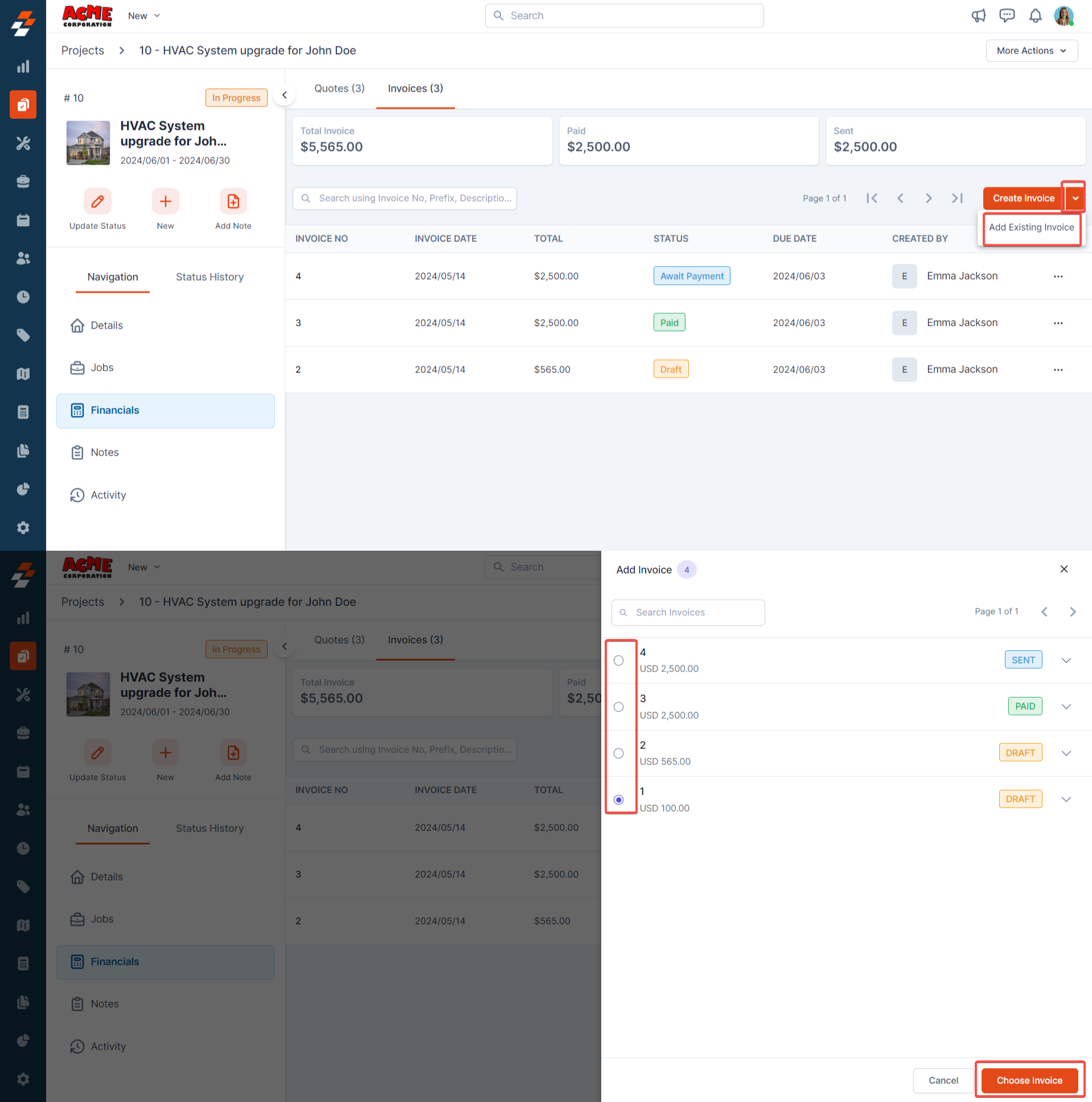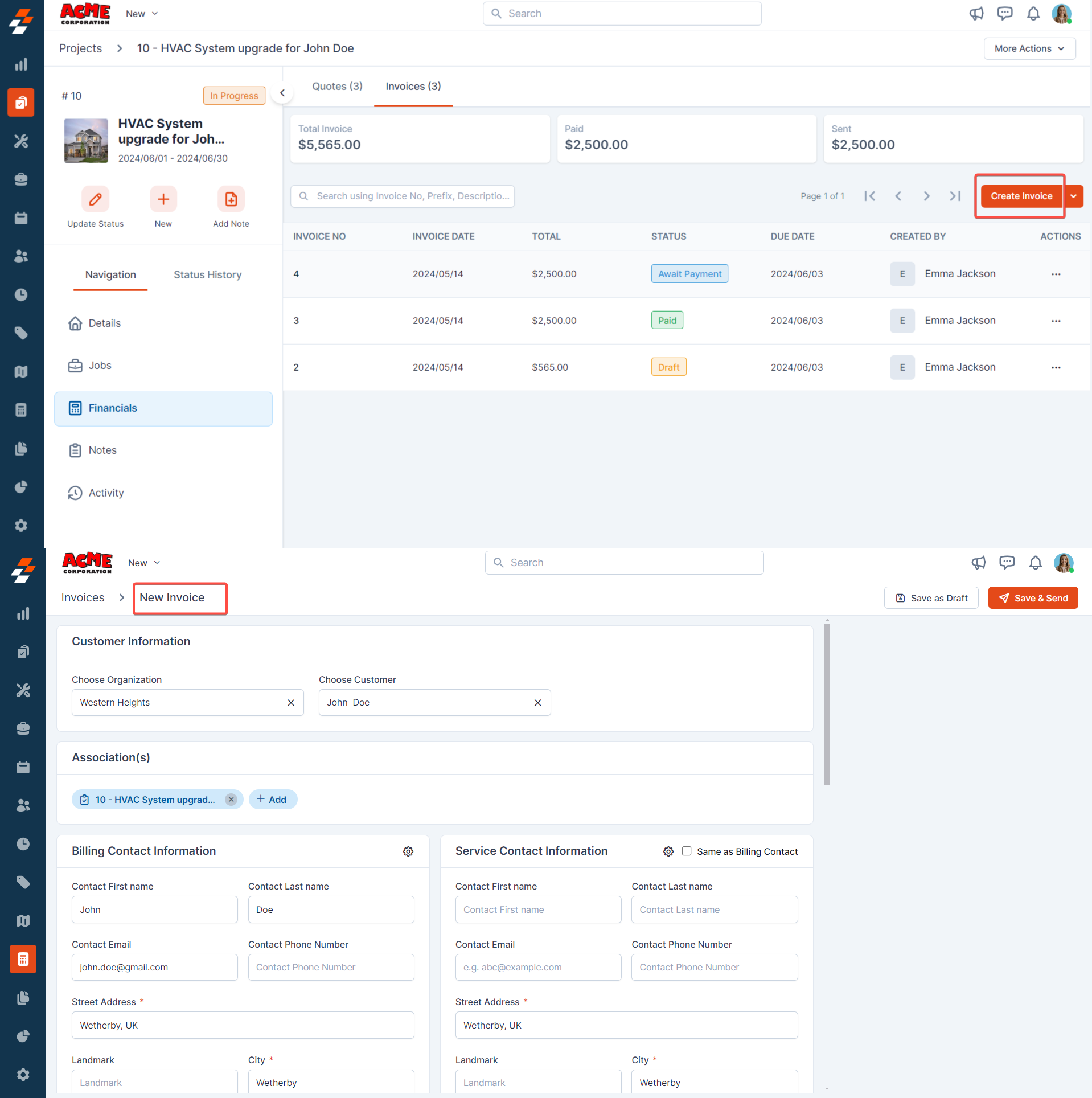 For step-by-step instructions on how to create a new invoice in the V3 Zuper Web App, click