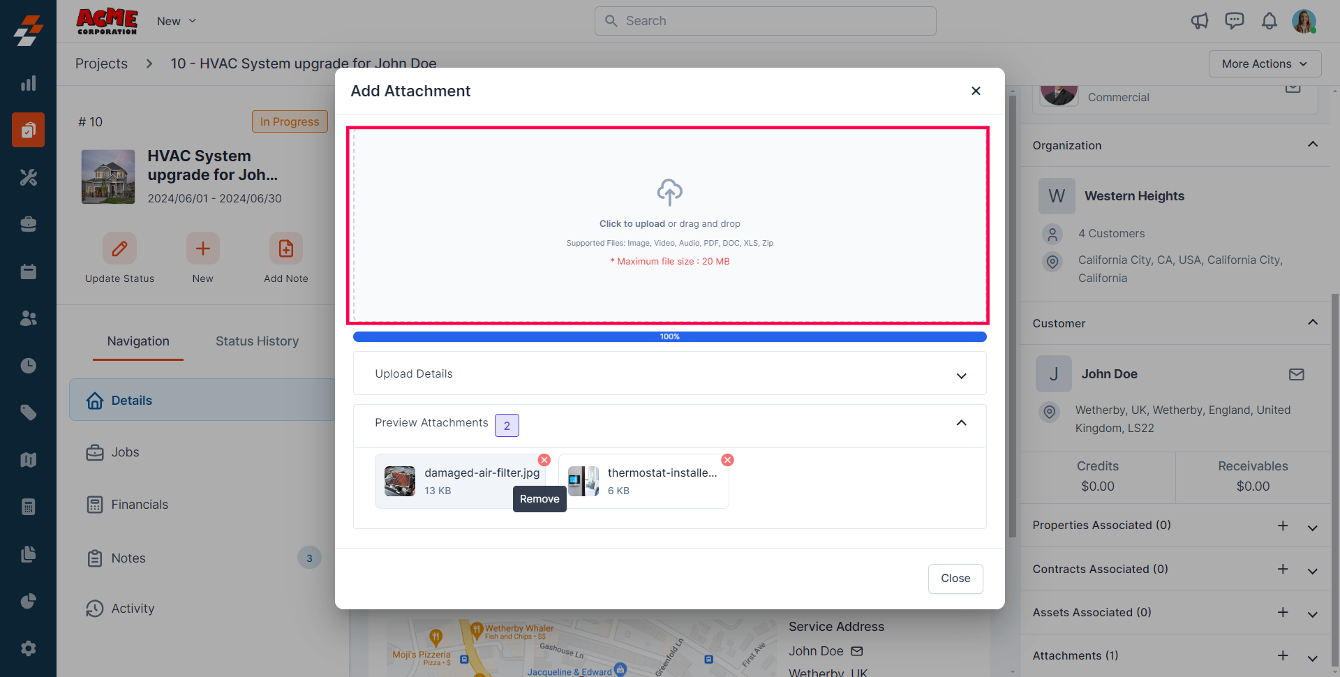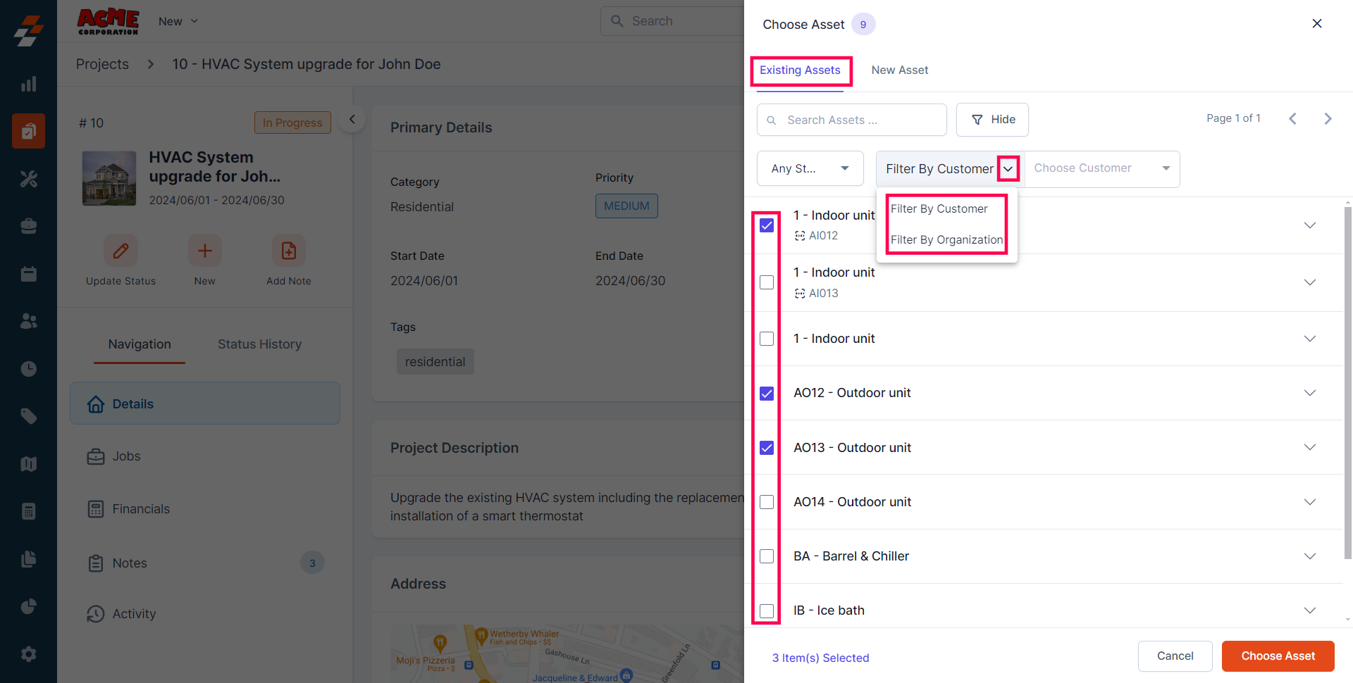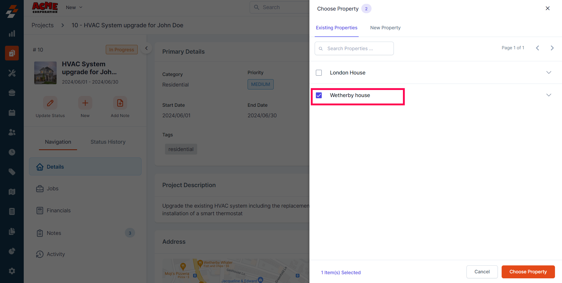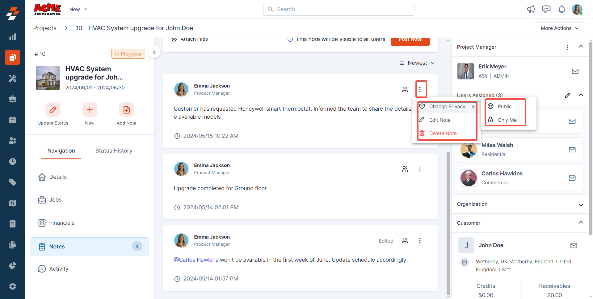 3. By default, the notes will be associated with the Project. You can also associate the notes with other modules such as Customer, Property, Asset, etc.