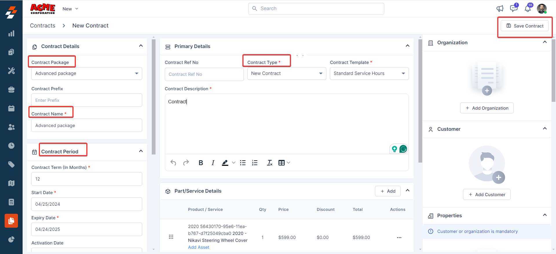 3. If no customer has been associated with the organization, and you like to add a new customer, click the "New Customer" tab.