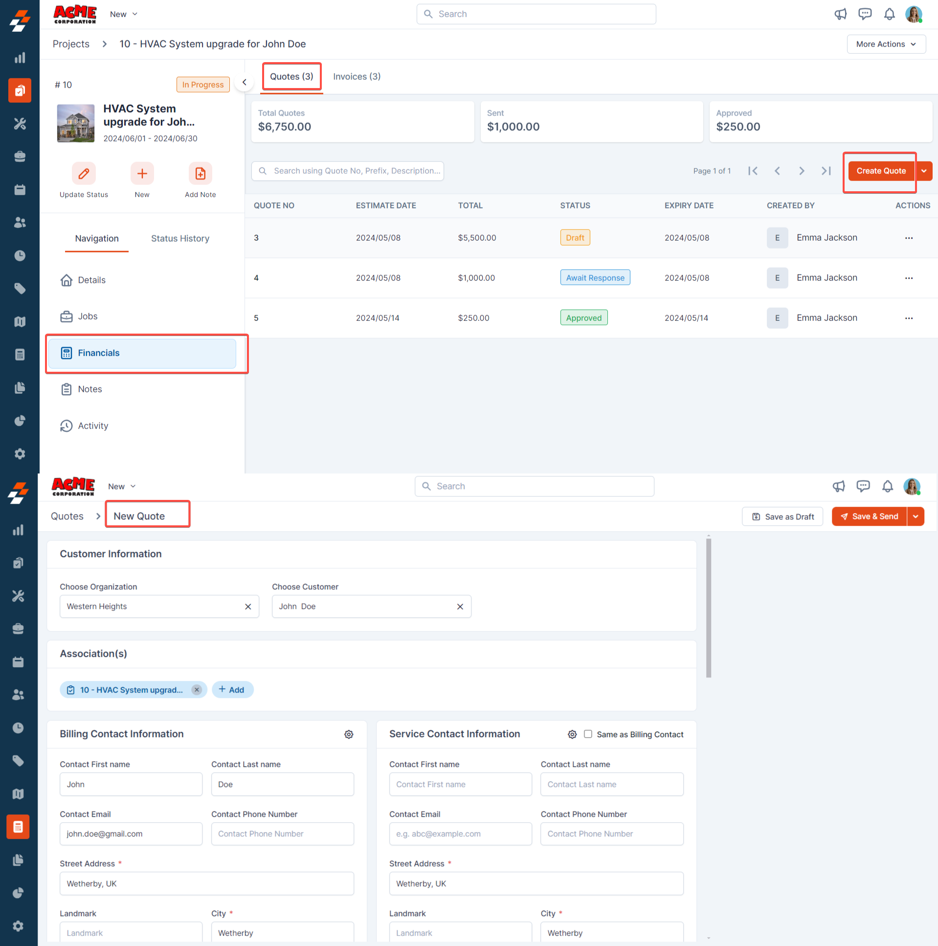 For step-by-step instructions on creating a new quote in the V3 Zuper Web App, click