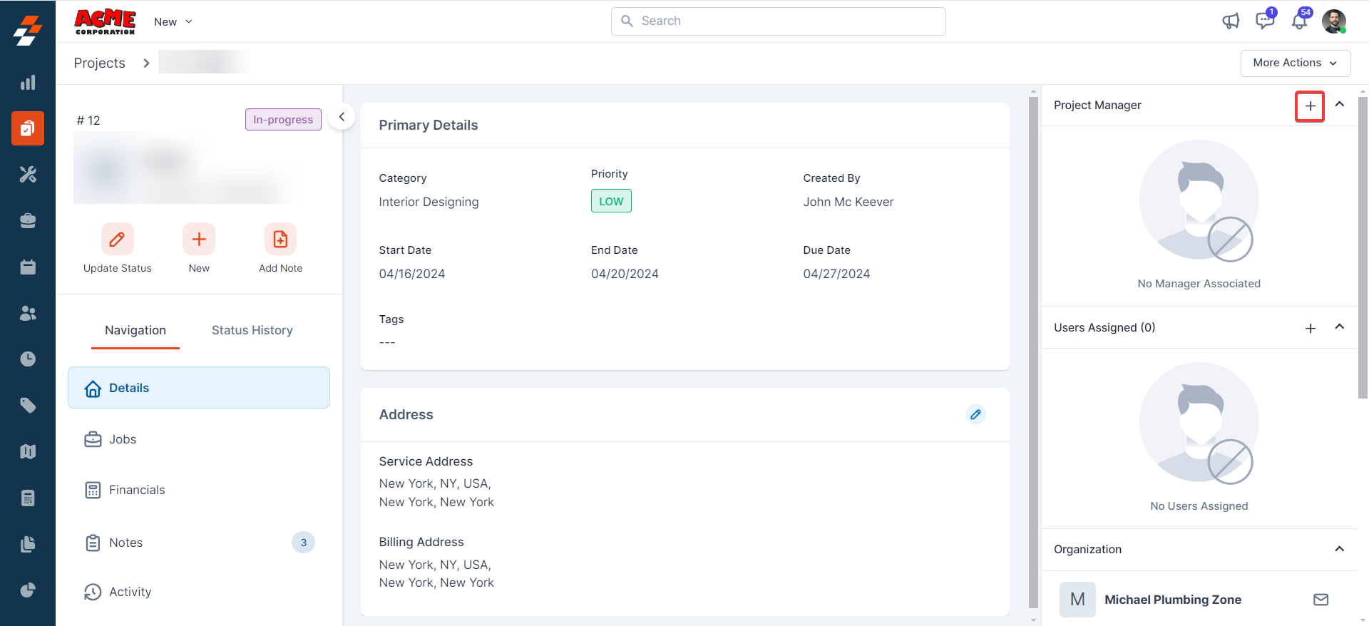 The project manager is the one who oversees the planning, execution, and completion of the project. To associate a project manager, follow these steps:
