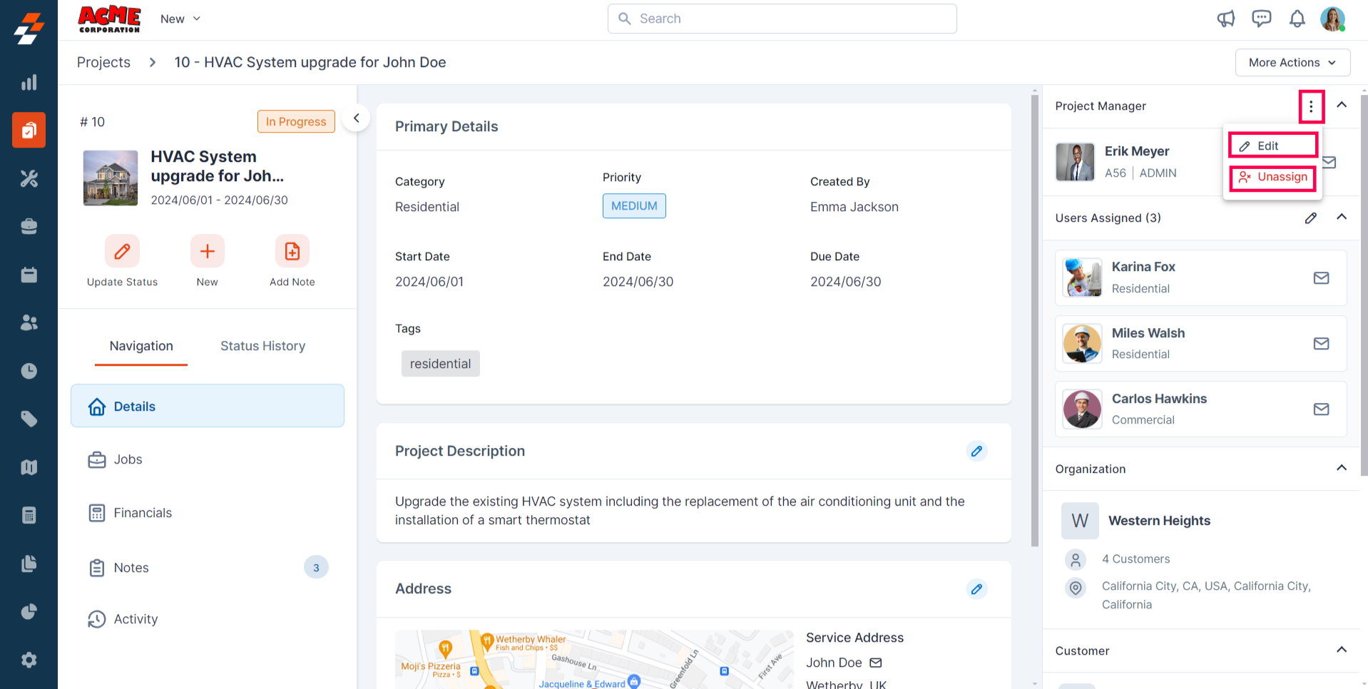 3. Once the project manager has been assigned to this project, you can unassign/change them at any time by clicking the "kebab" icon next to the project manager.