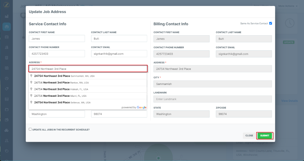 Please follow the below instructions to add the geo-coordinates to the address of a customer or job,