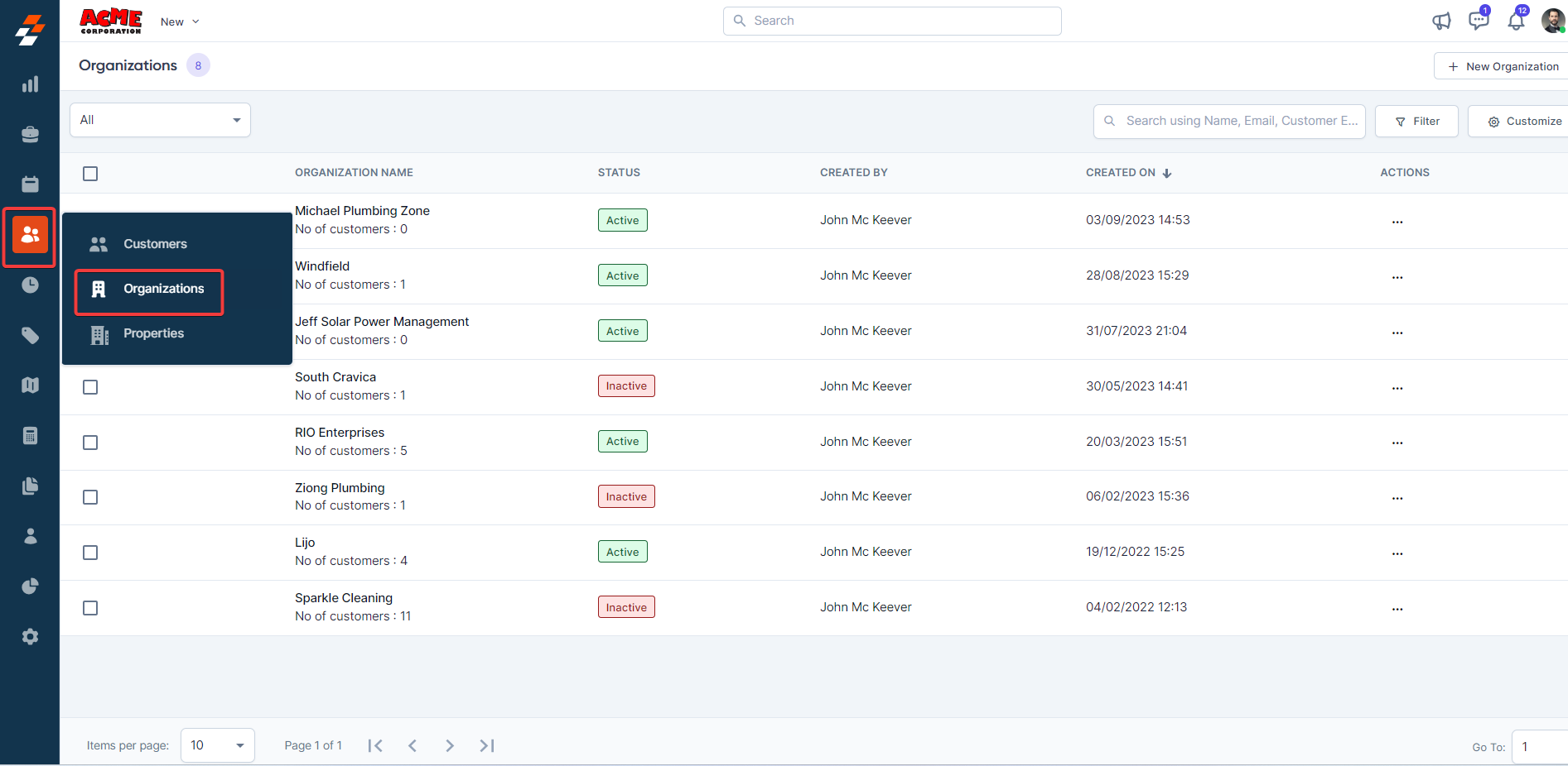 The Organization module contains different company details linked to the customer contacts. Associating these modules can help the field technician operate efficiently.