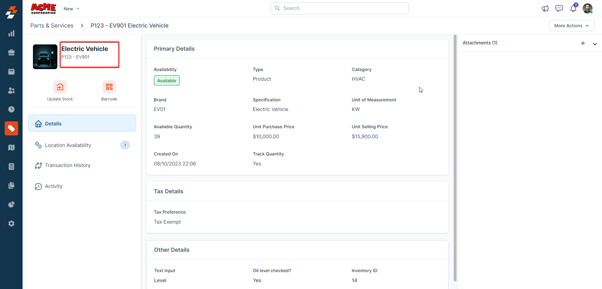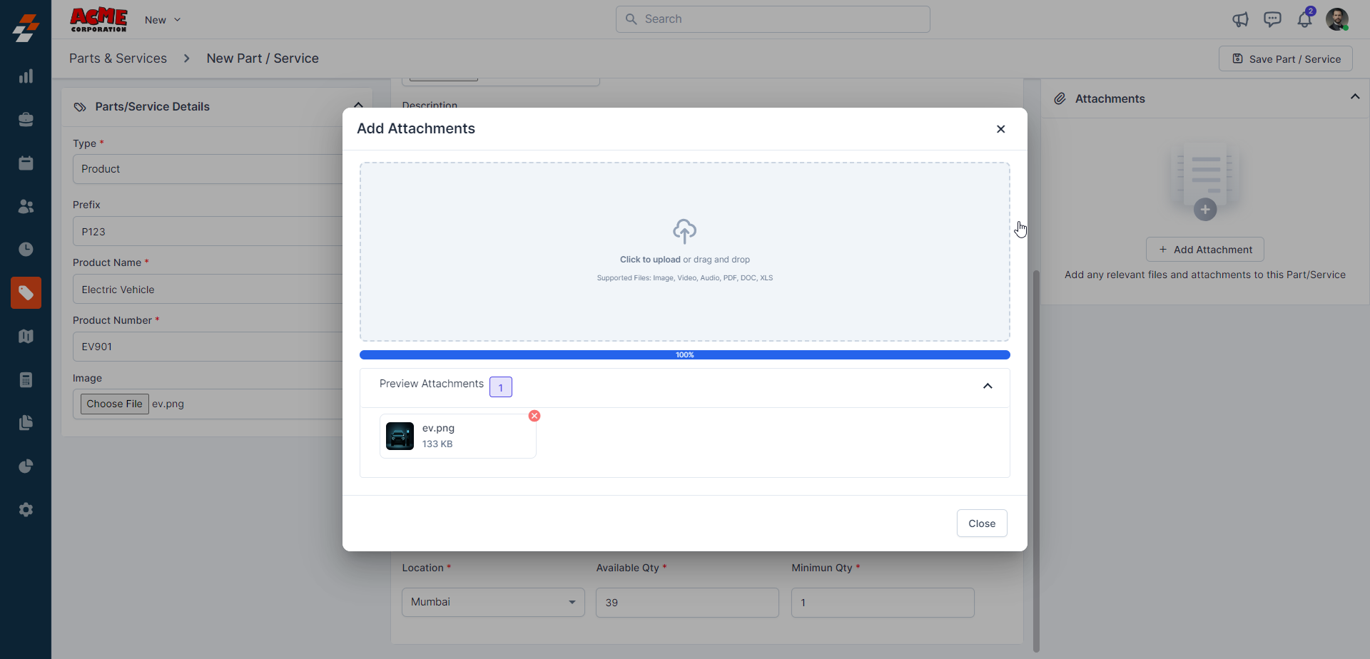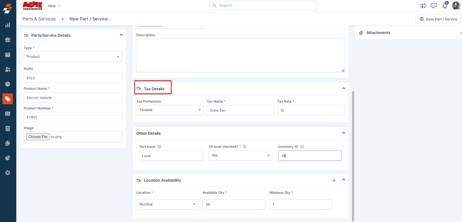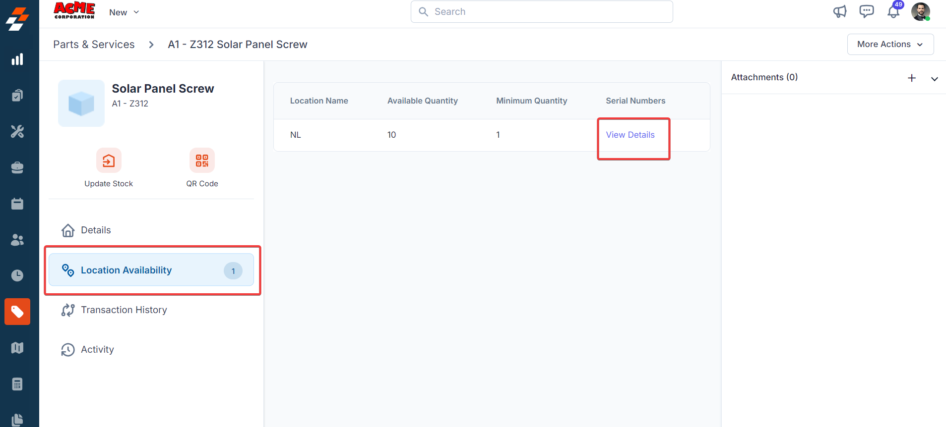Note: After saving the “Part,” the same can be tracked under the “Location Availability” section.