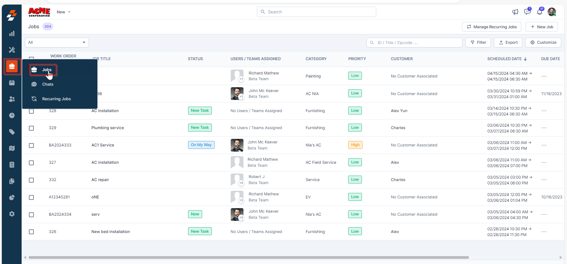 1. Click the "Jobs" module from the left navigation menu and select "Jobs."