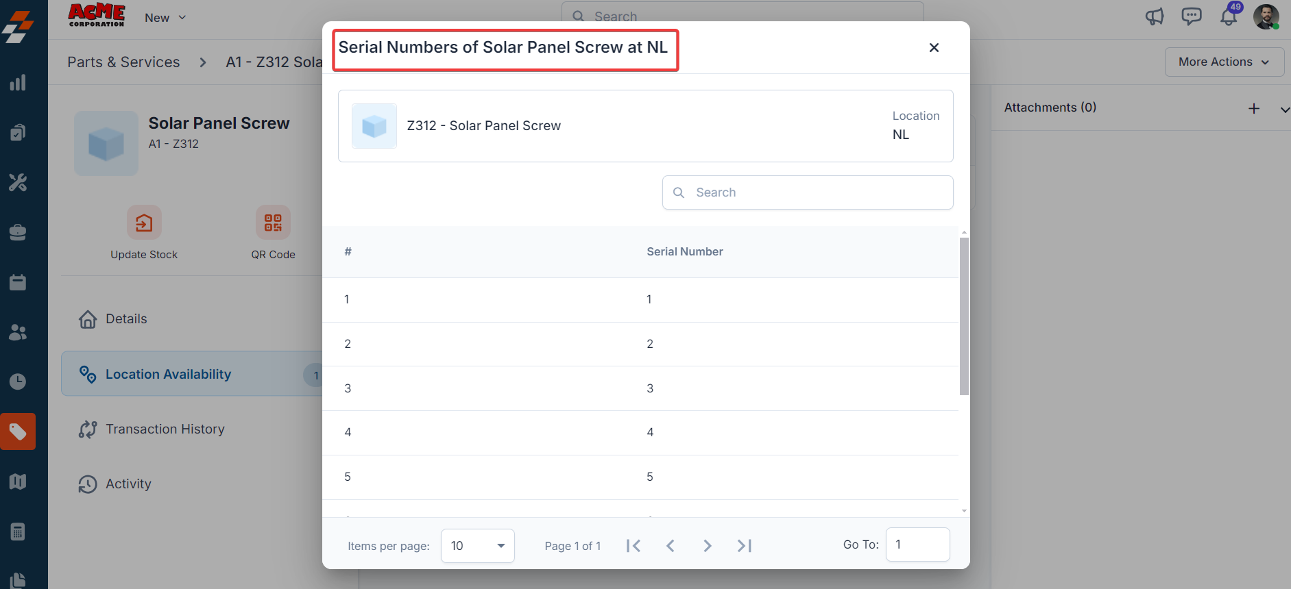 3. Once you save the serial numbers, you can view them from location availability section.
