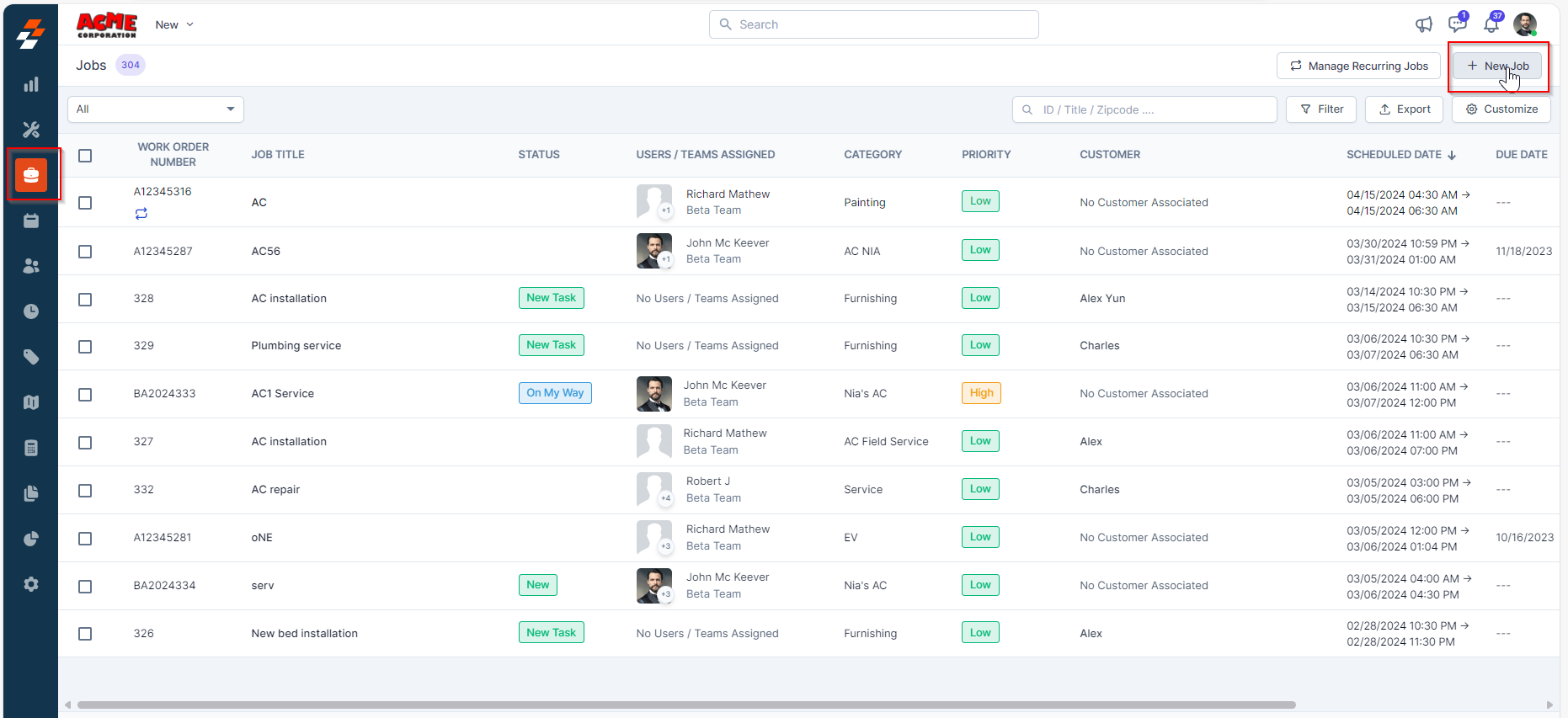 2. In the Jobs listing page, click the "+New Job" button at the top right corner.