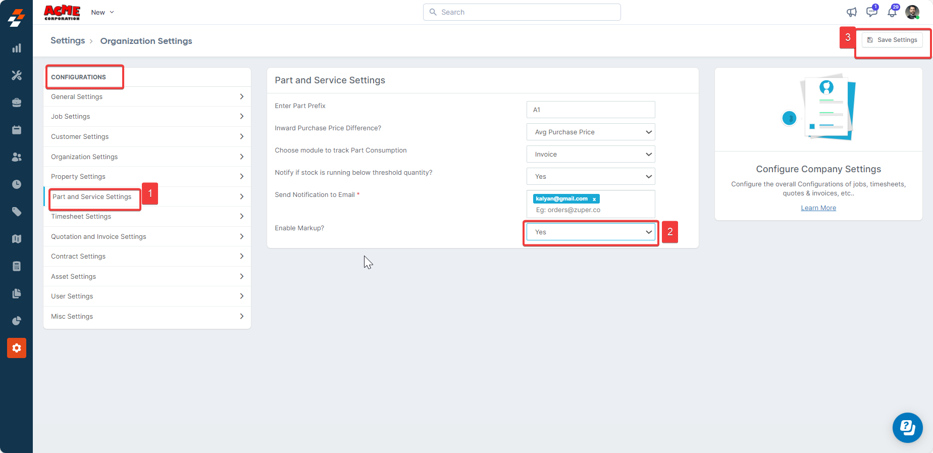 In the following example, we will create a job, add a part or service, and make the desired changes to the Markup.