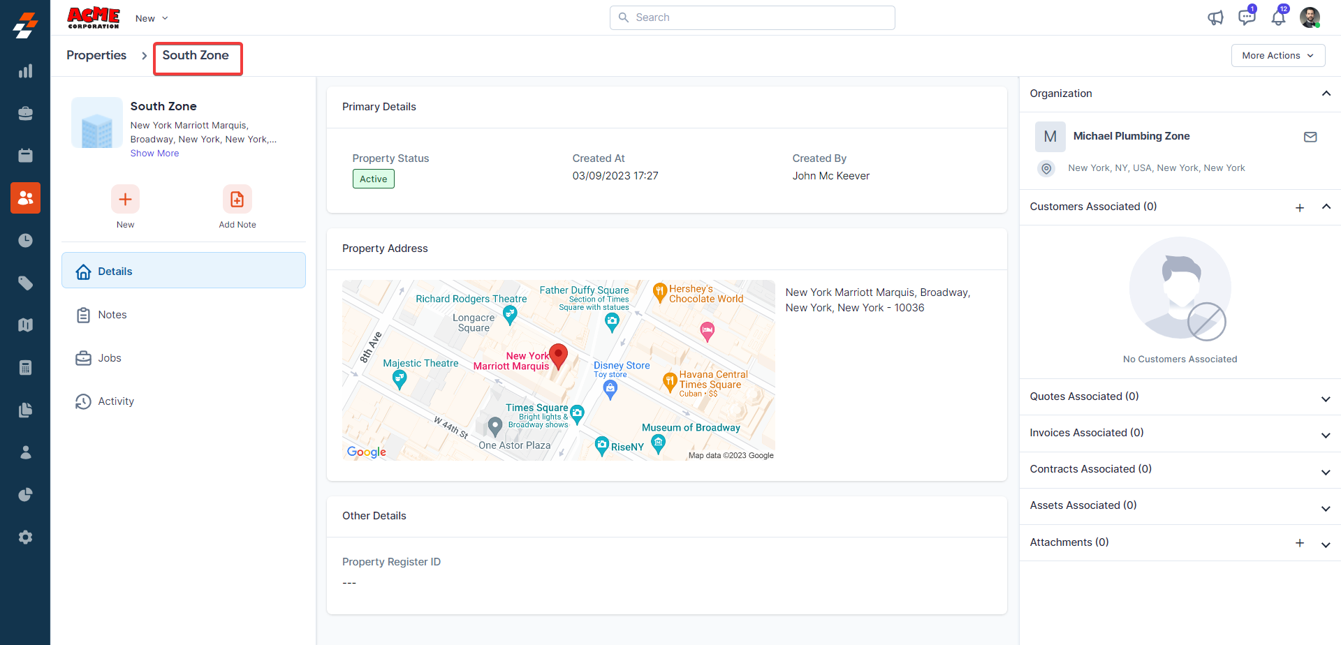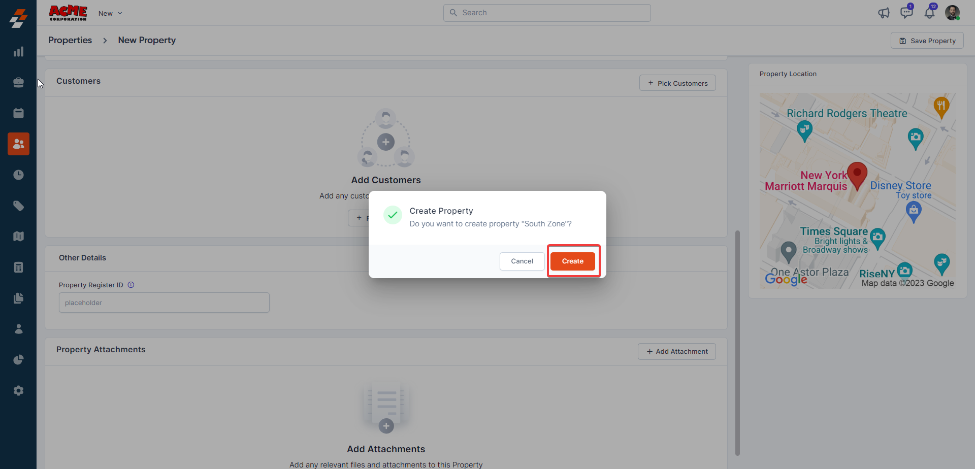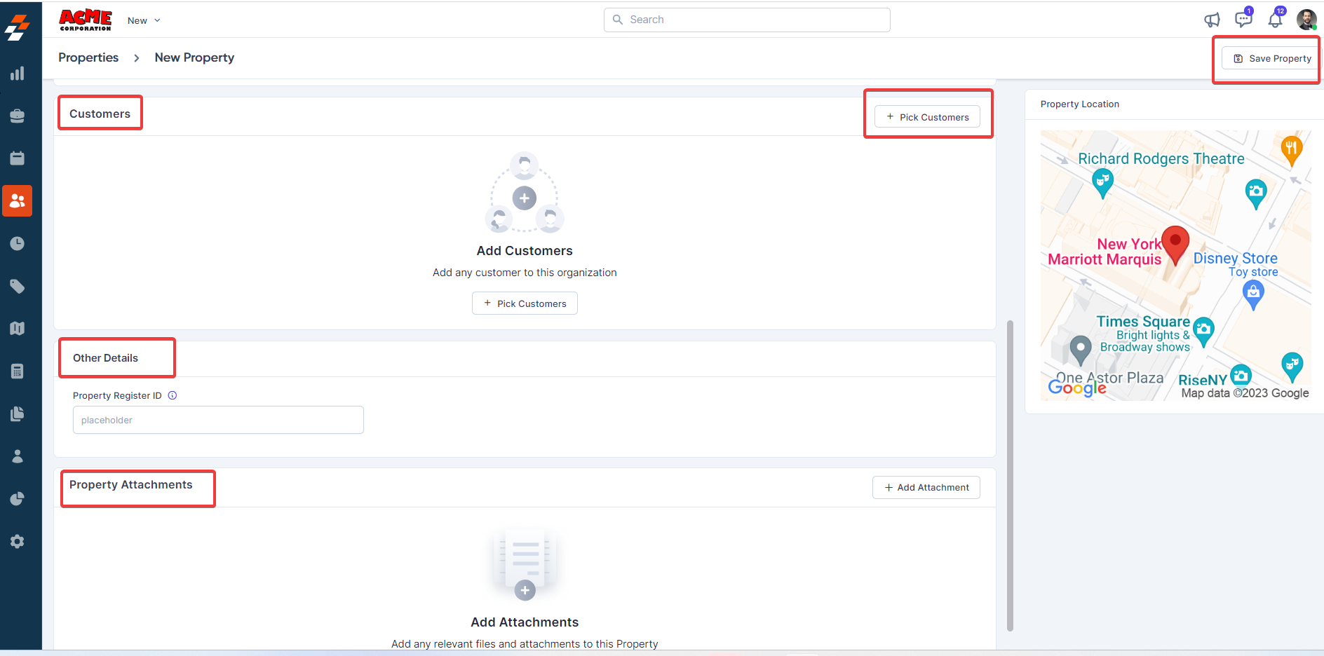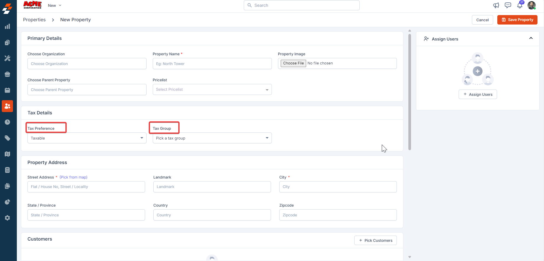 Creating a property is essential for associating it with multiple modules, such as assets and customers. This association allows field technicians to efficiently provide services to end customers.