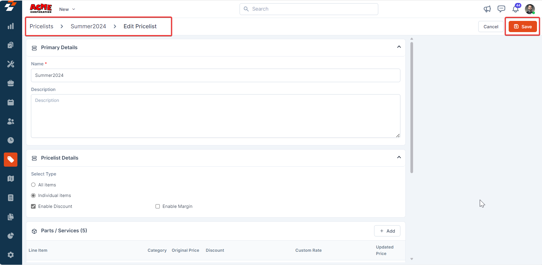 Applying a pricelist in Zuper ensures consistent pricing across various modules, such as customers, organizations, properties, quotes, invoices, jobs, contracts, and proposals. Go to the module where you want to apply the pricelist, such as ...