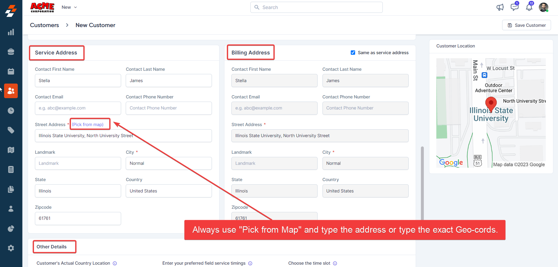- Customer First Name (Mandatory) - Type the name of the customer.