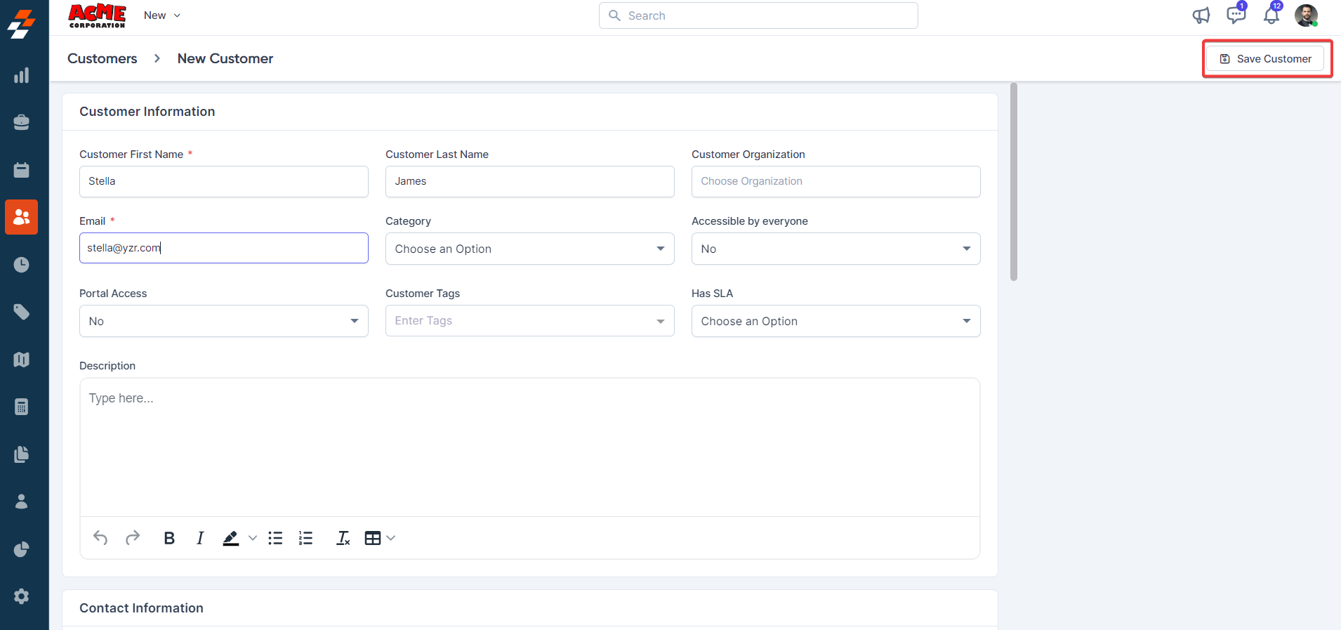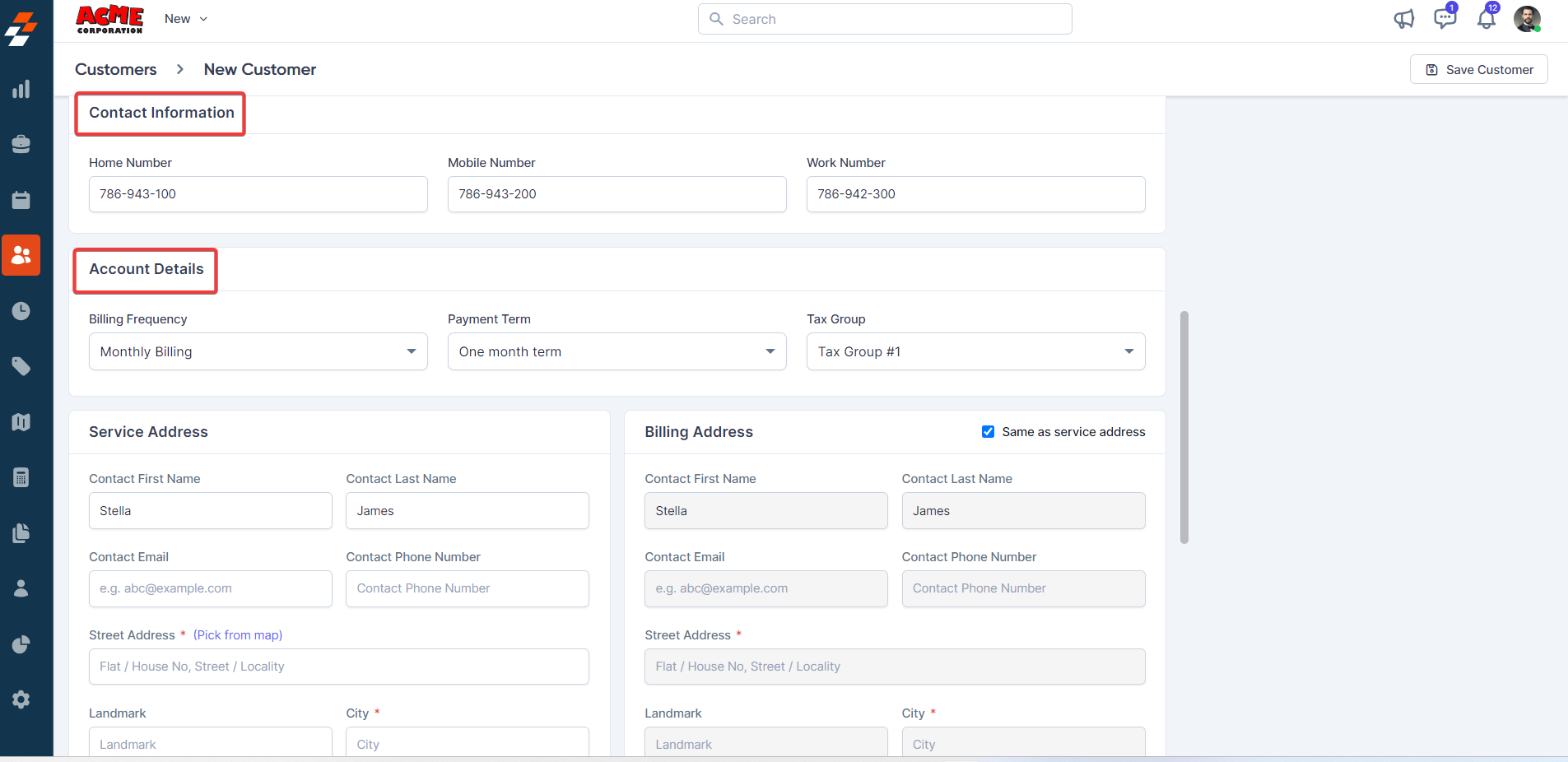 6. Click the "Save Customer" button to successfully create the customer.
