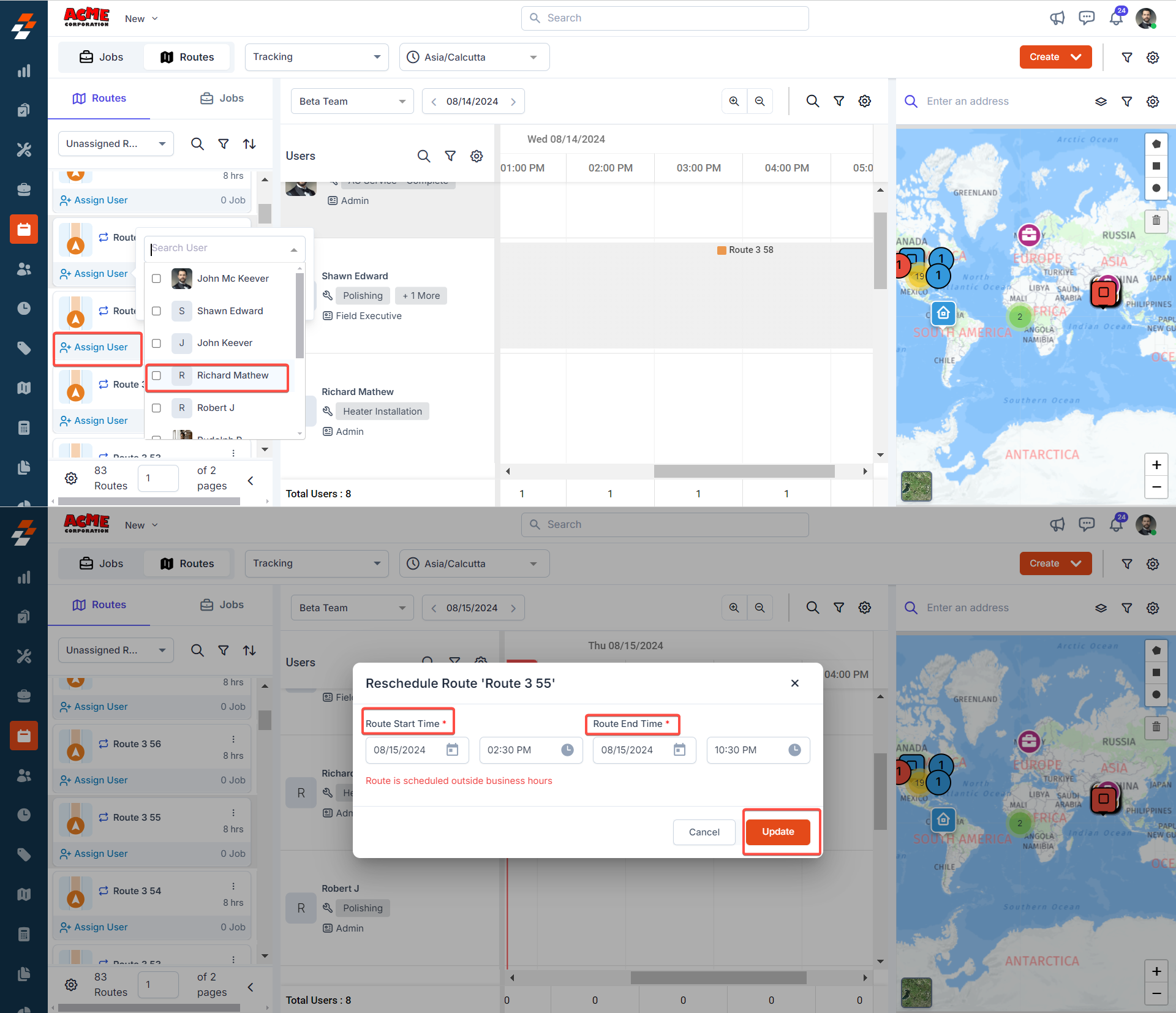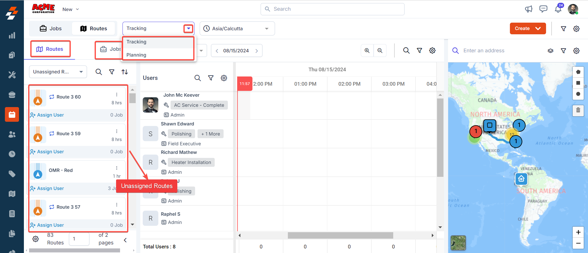 Assign Unassigned Route to the Available Technician (Tracking View)