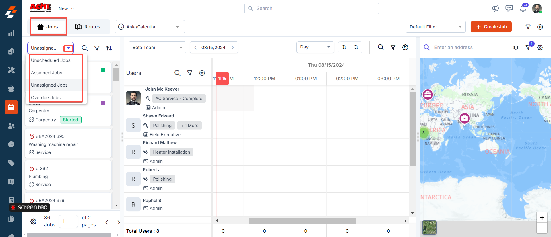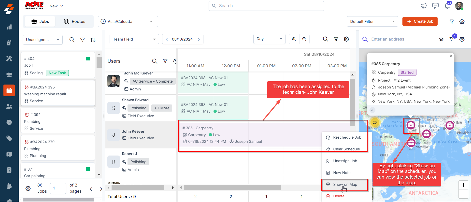 You can also view the job location on the map by right clicking the job in the