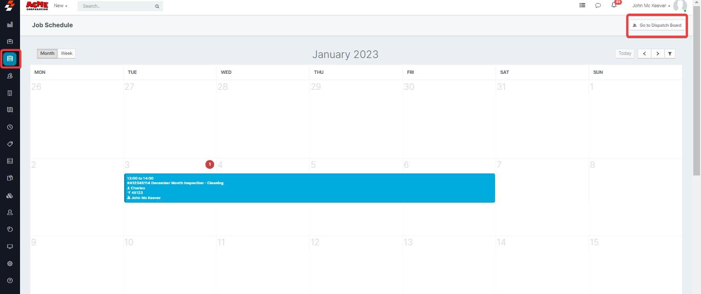 1. Select the "Schedule" icon from the panel. To access the Employee Schedule, click on "Dispatch Board."