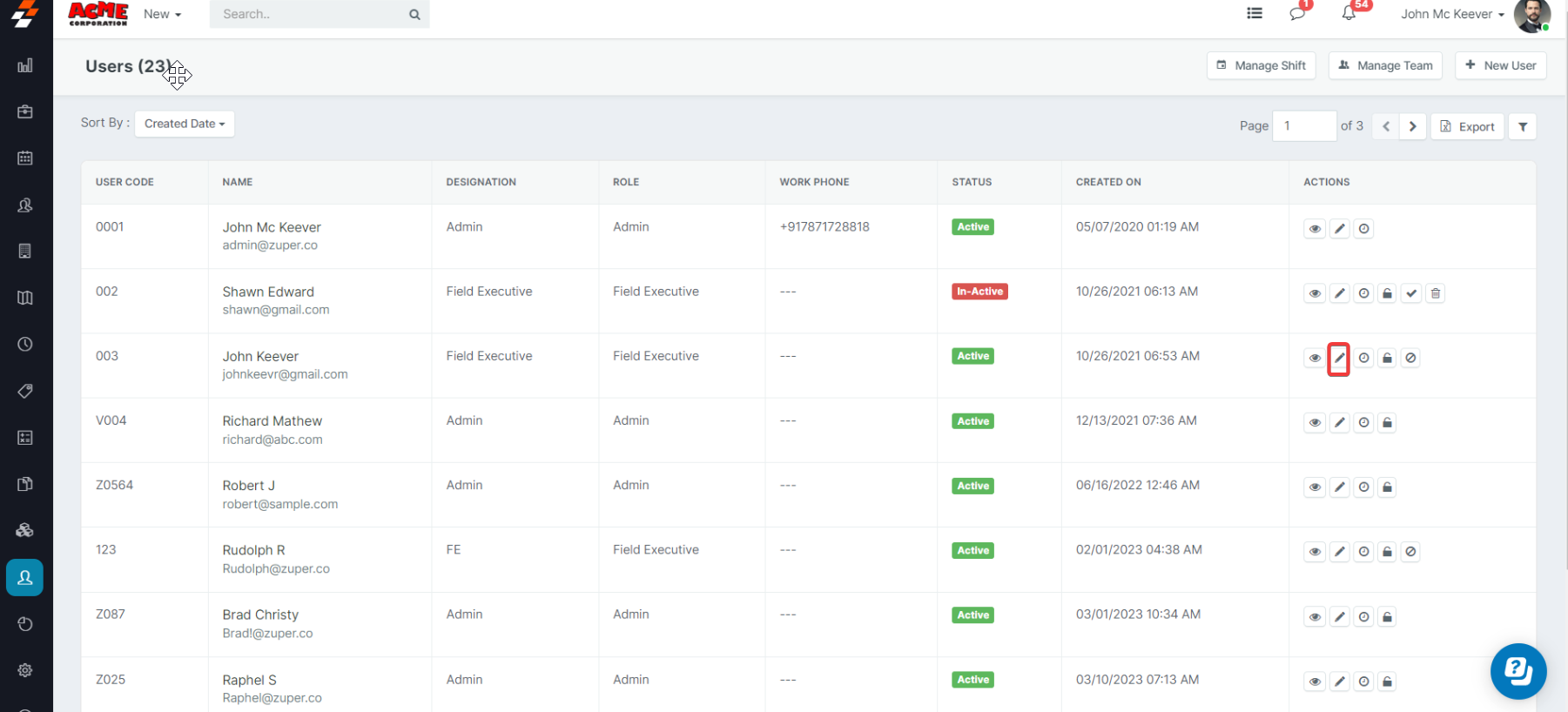 - Find the User whose role needs to be changed and click on the edit button next to the user.