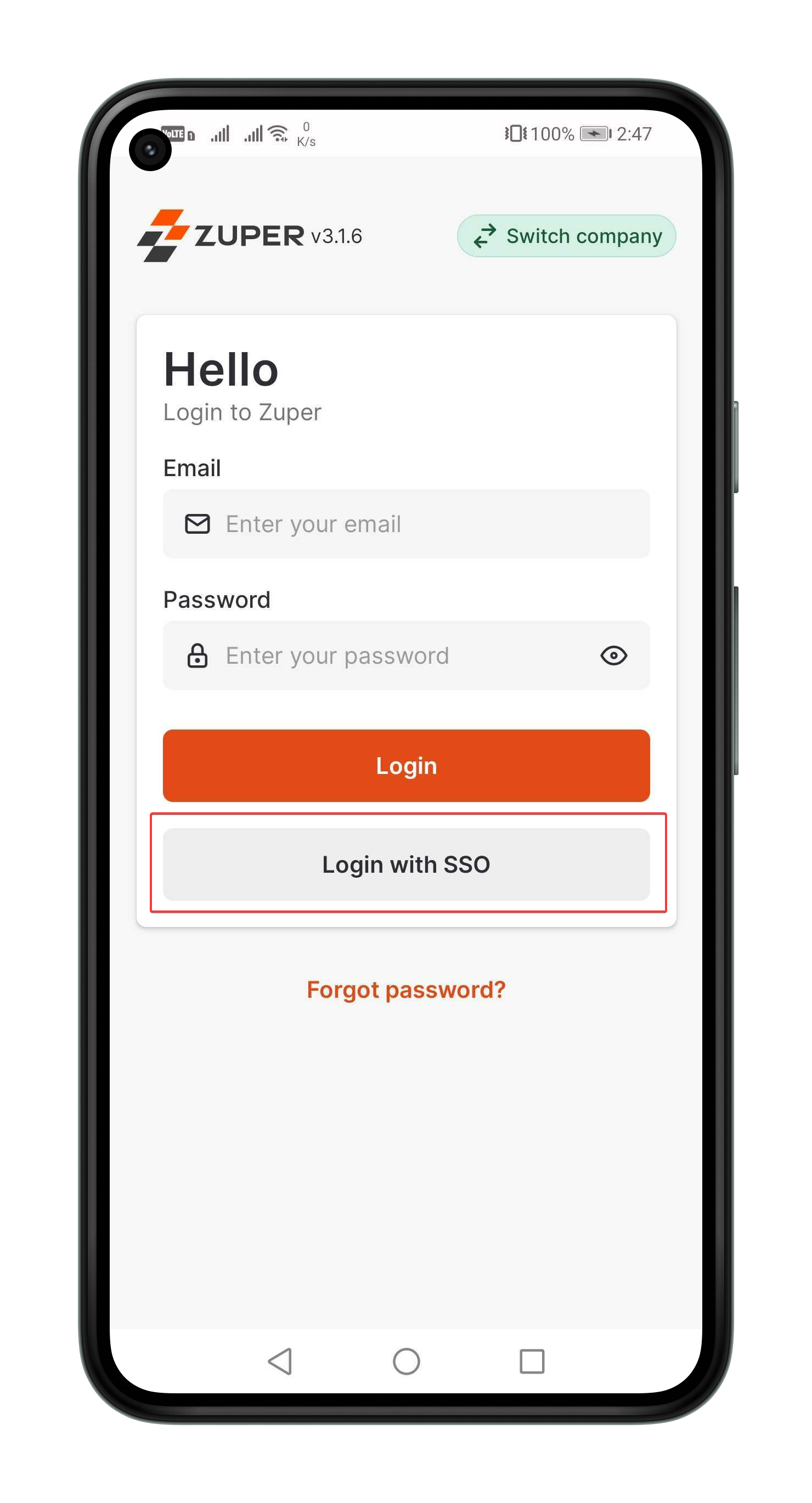 Note: SSO must be enabled from the Zuper Web App. Contact your admin to enable this option.