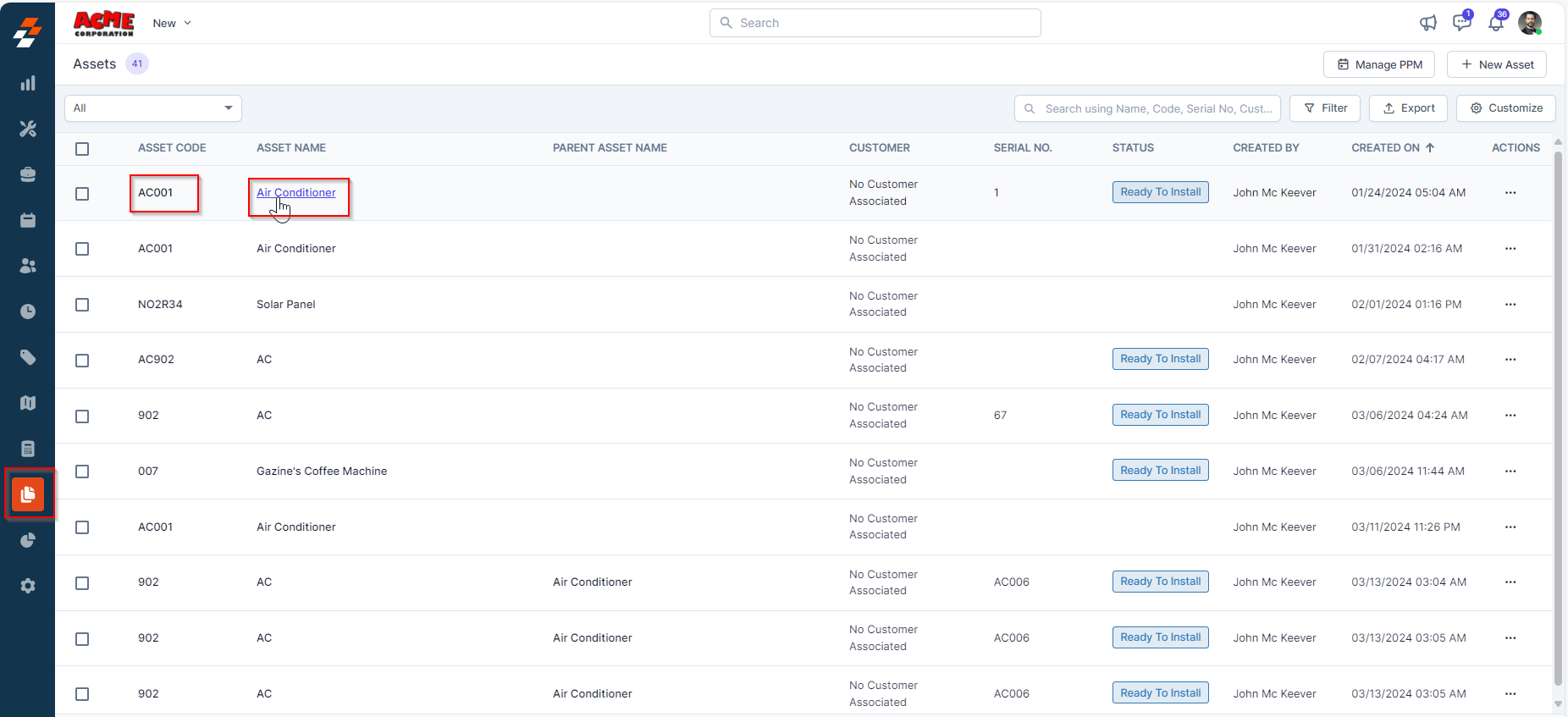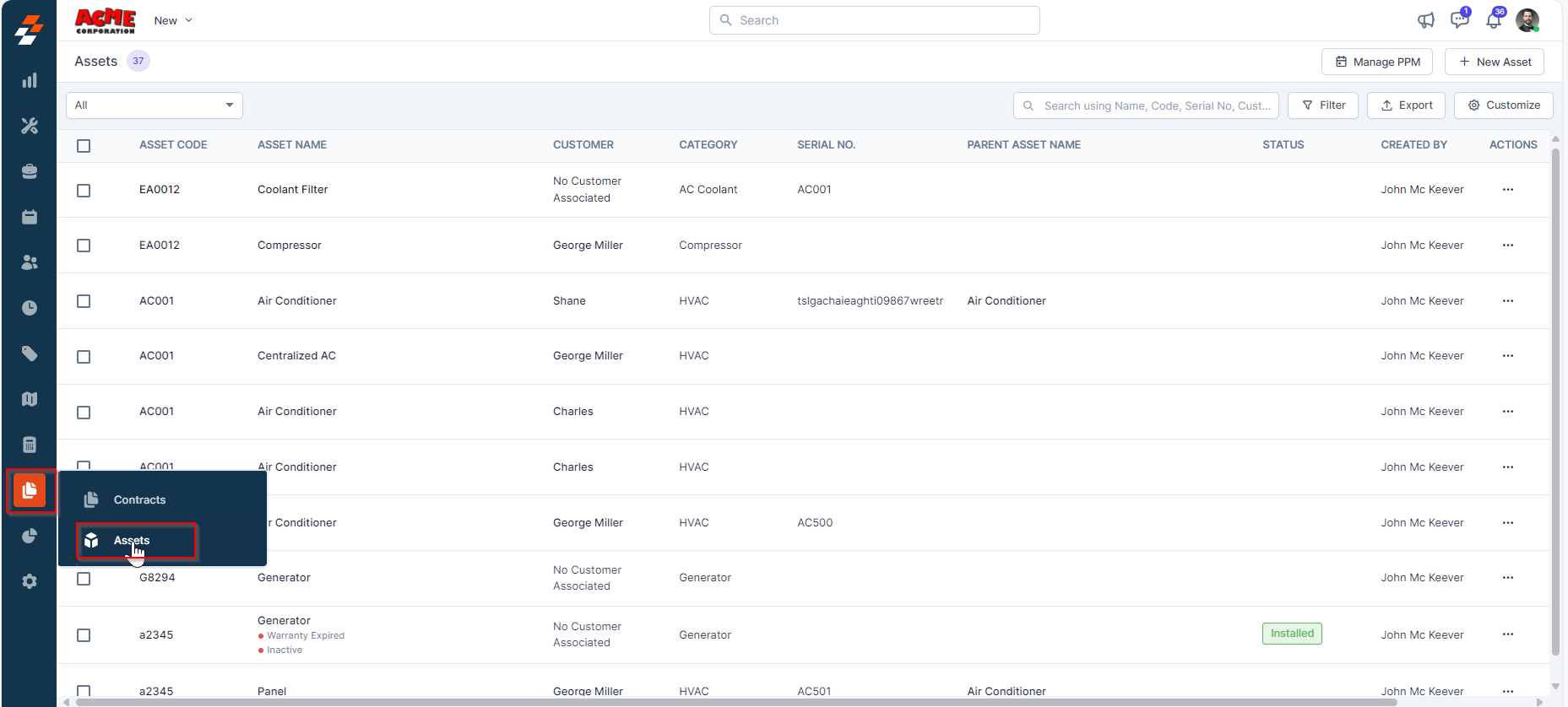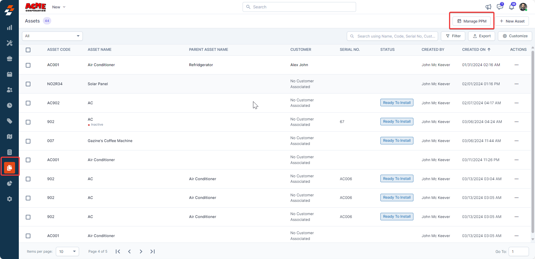 Navigation: Assets --> Assets Listing page--> Manage PPM