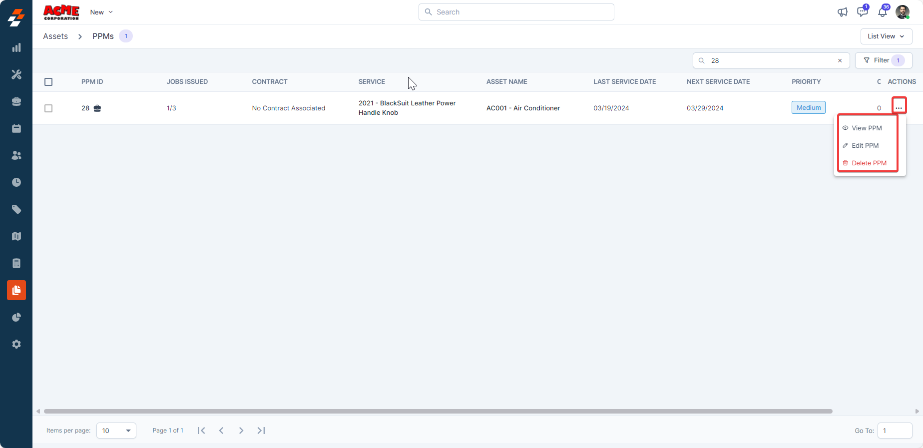 Once a PPM has been created for an asset, you can also edit or delete PPM as needed. To manage PPM, follow these steps: