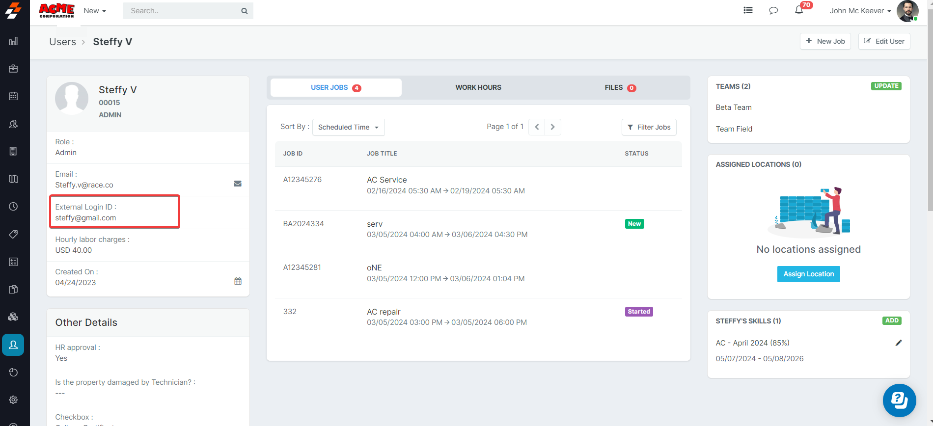 - Can create Jobs and assign them to team members.
