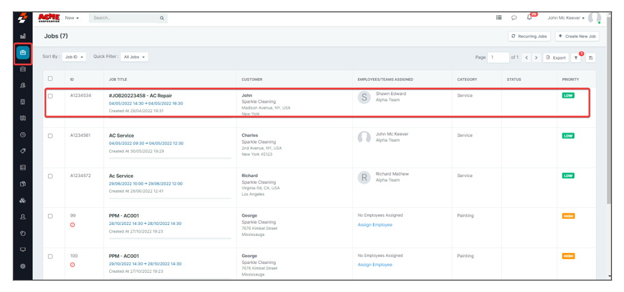 choose the “Job” for which you want to view the Geo Coordinates of your