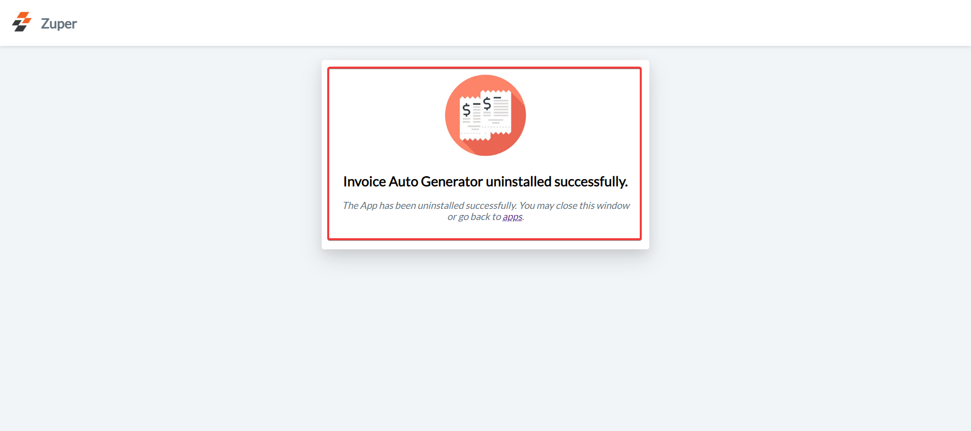 4. The Auto Invoice Generator app is uninstalled successfully.