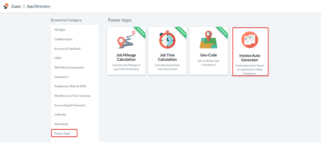 2. Under the “Browse by Category,” select the “Power Apps” option and choose “Invoice Auto Generator.”