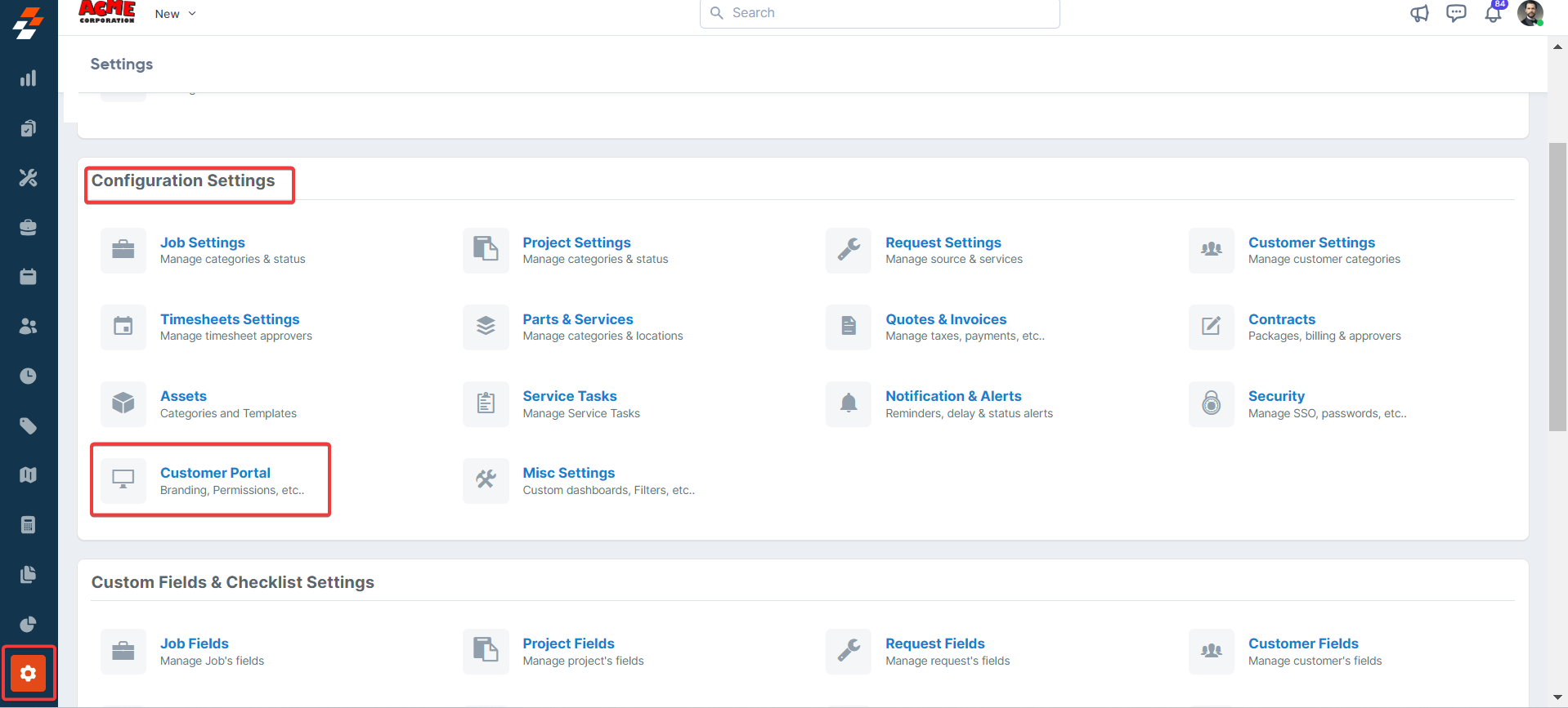module from the left panel. Under the “Configuration Settings,” choose “Customer Portal.”