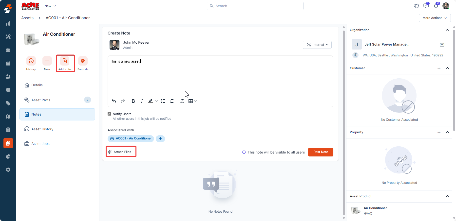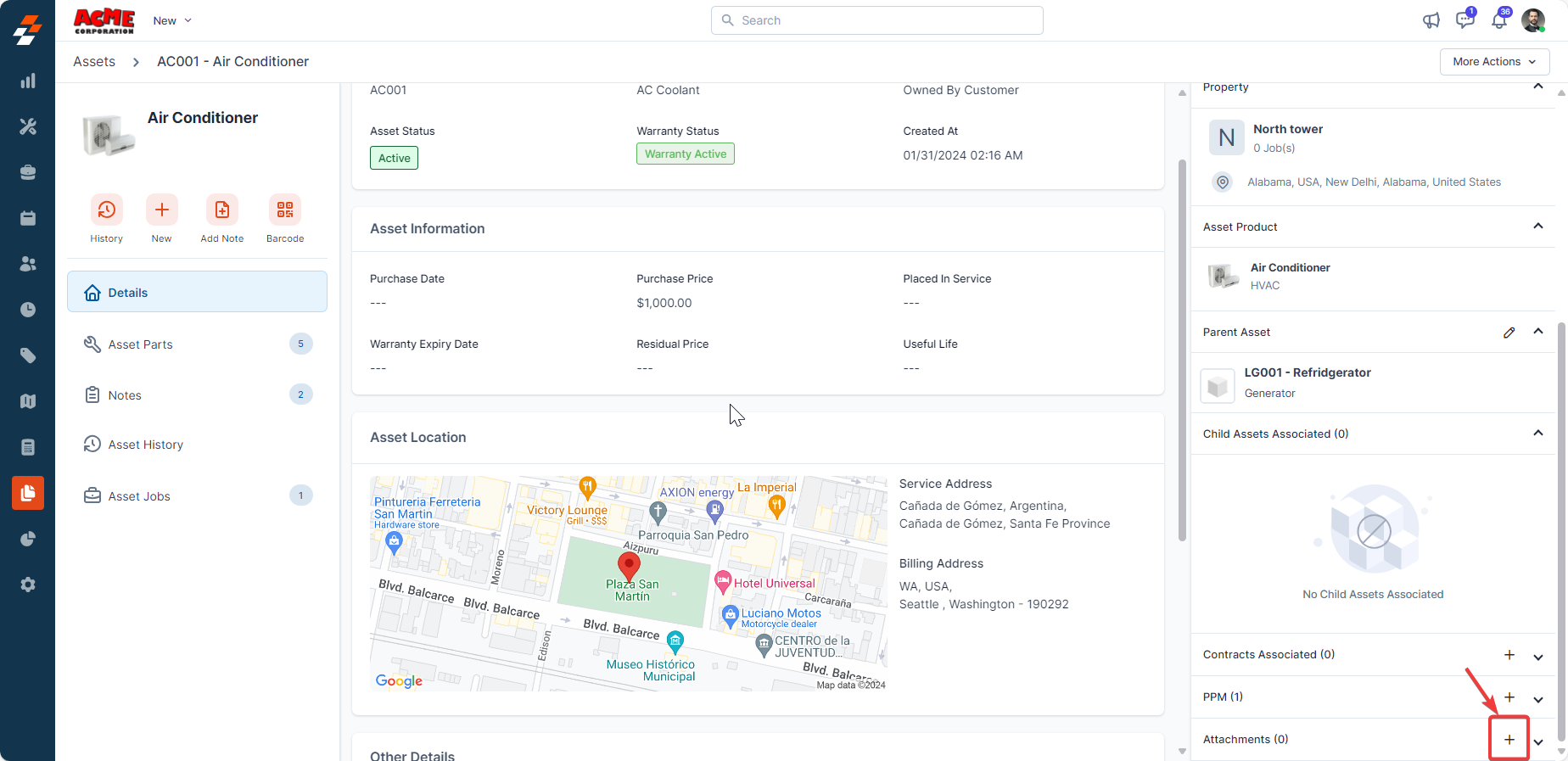 An attachment can either be an image, video, audio, PDF, DOC, XLS, or Zip file that you can attach to the asset for more clarity. To add an attachment, follow these steps: