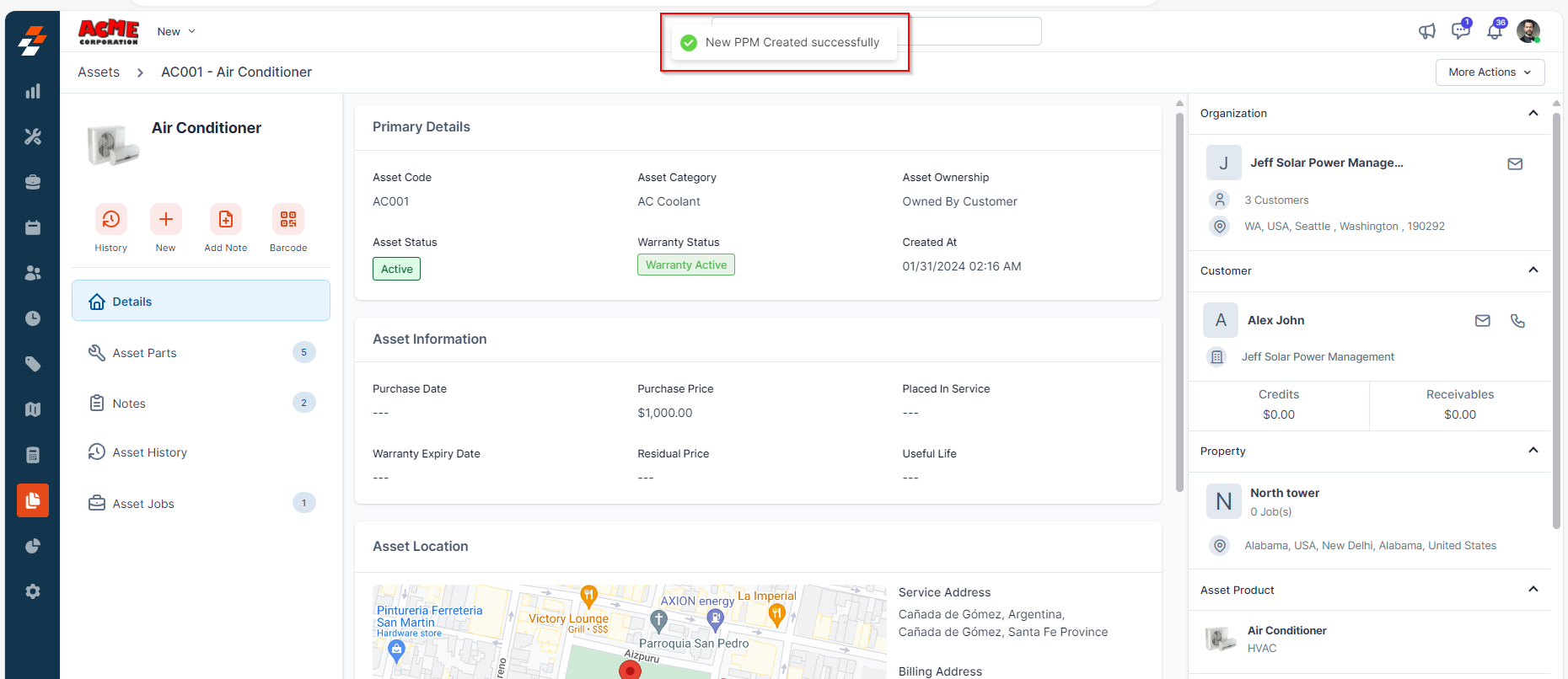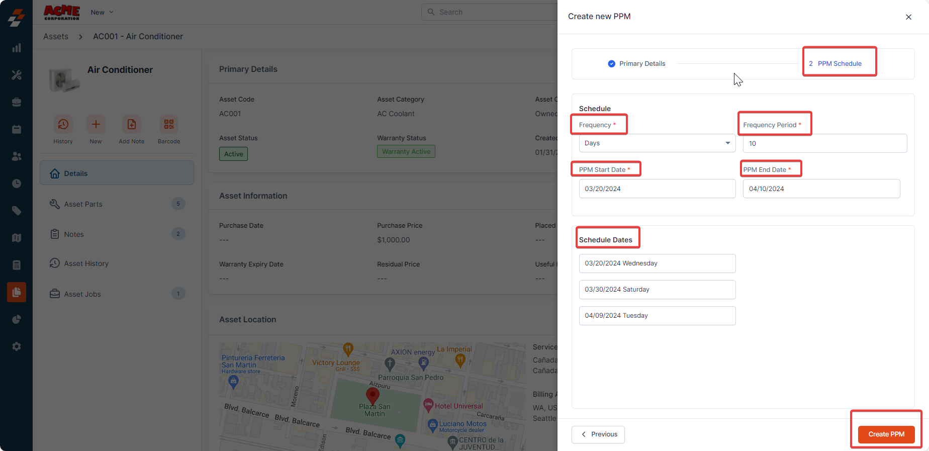 Planned Preventative Maintenance in short known as "PPM" refers to regular cadence performed on an asset to ensure proper functioning. If you're looking to add a PPM for the asset, follow these steps: