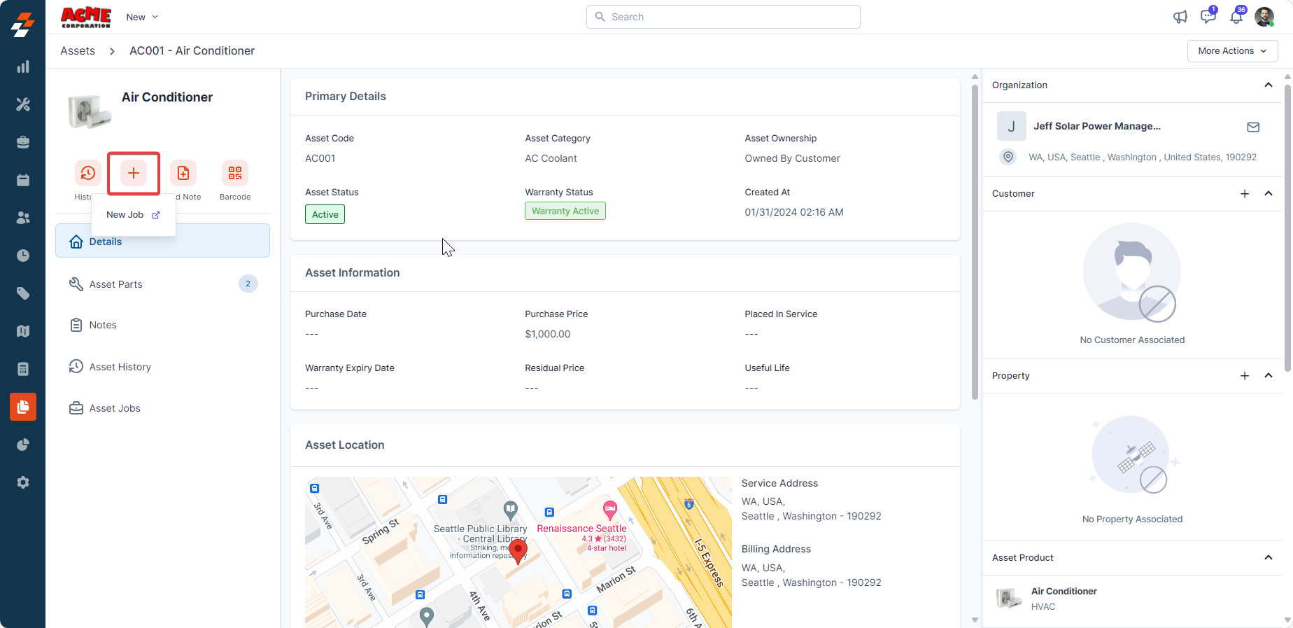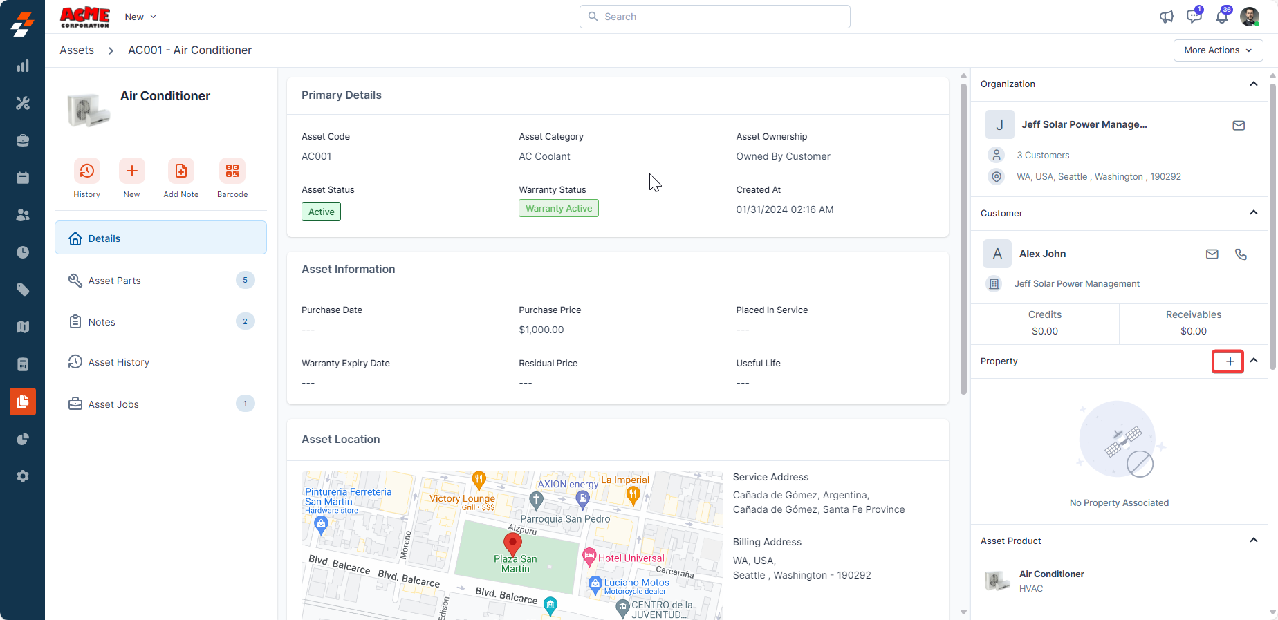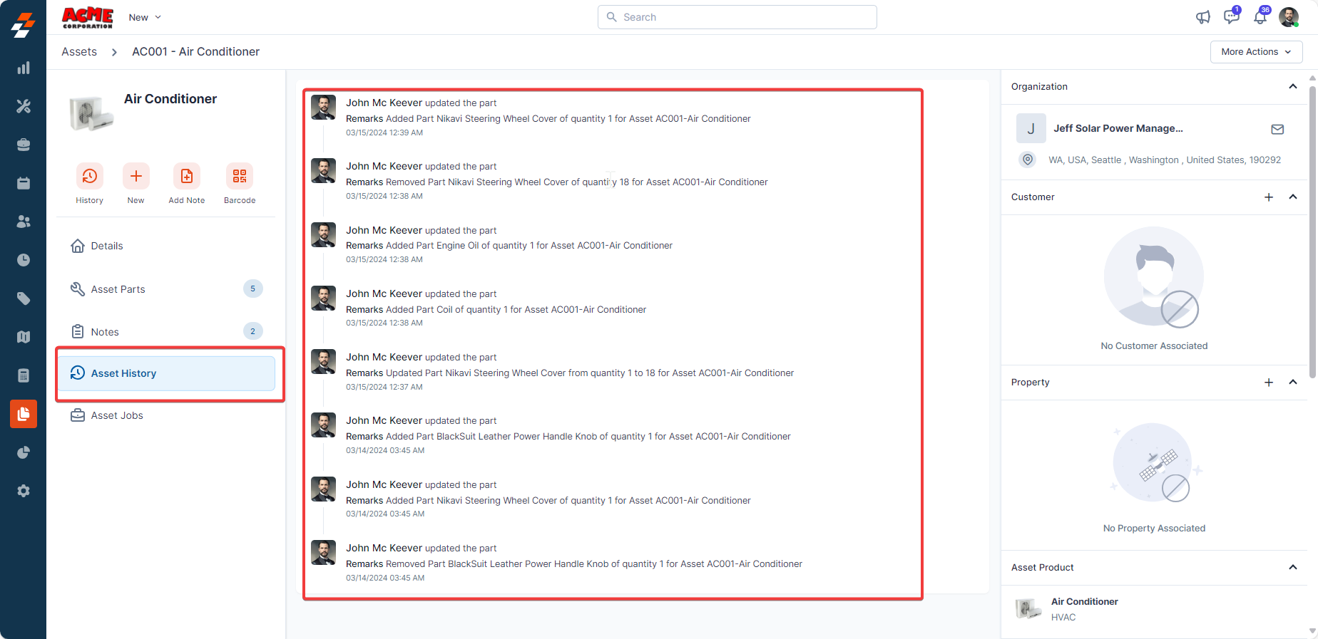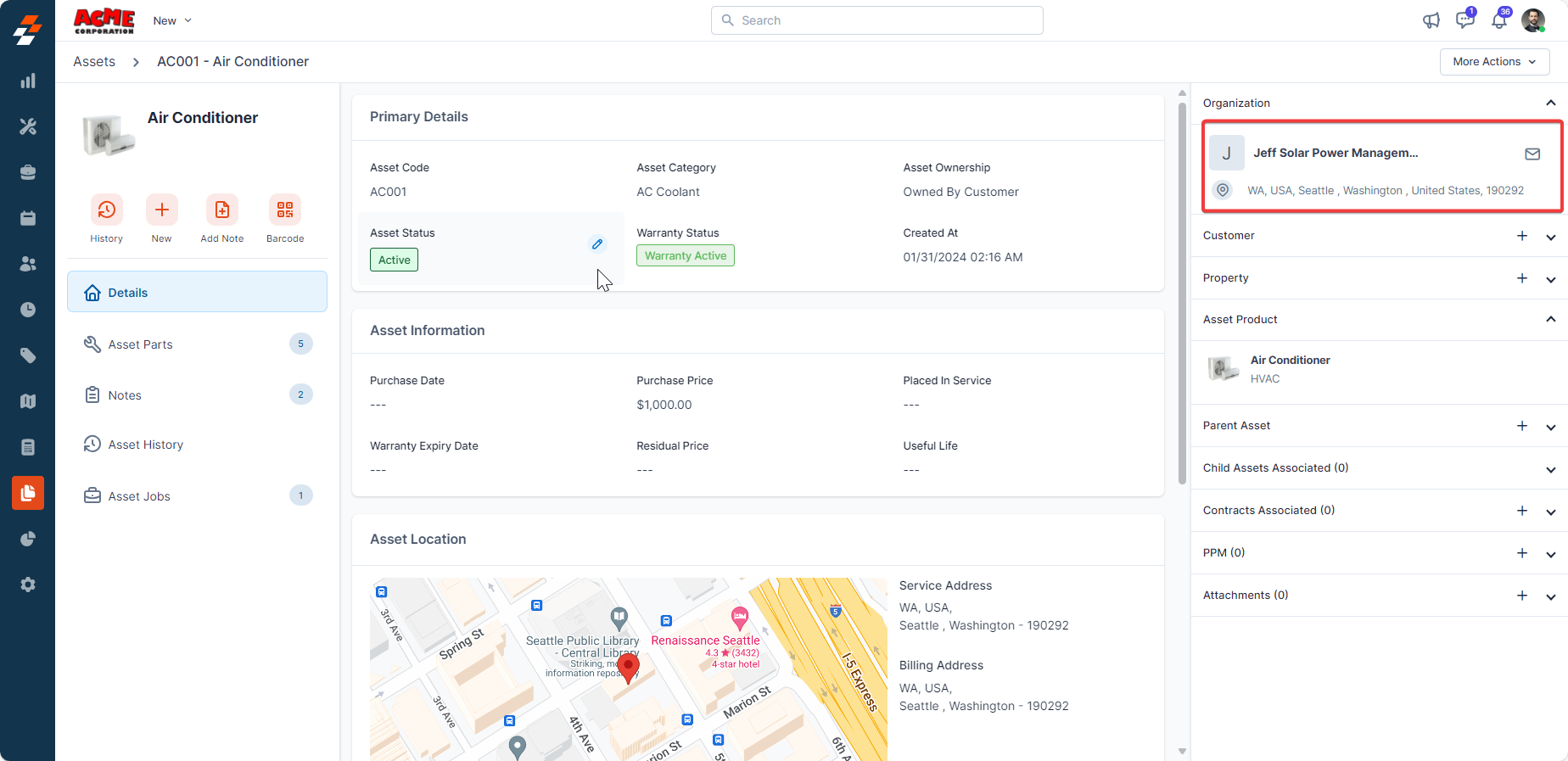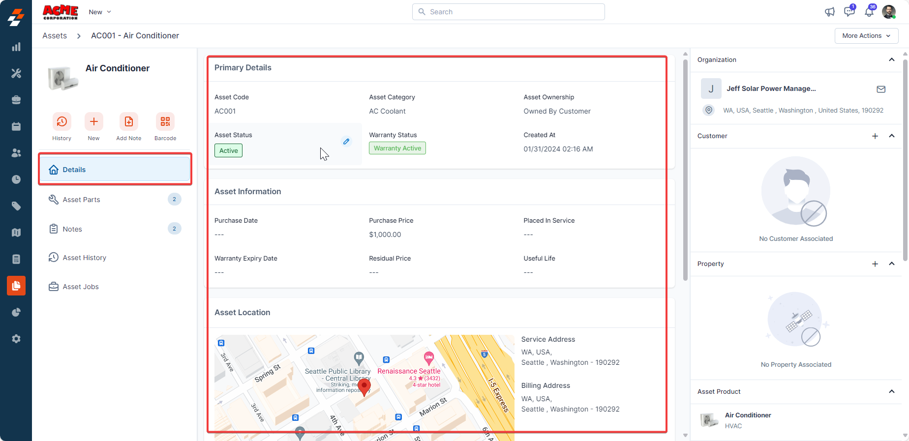 You can also share the asset details via email to the customer/organization or your email address for records. To do so, follow these steps:
