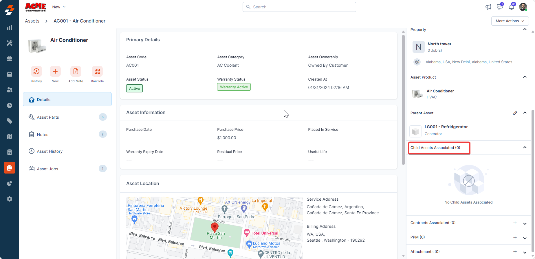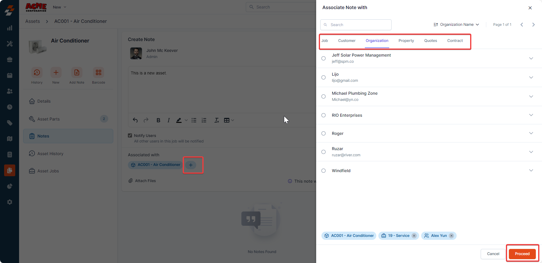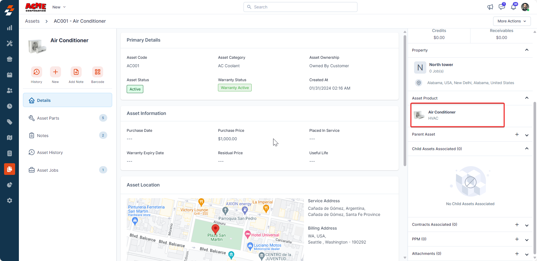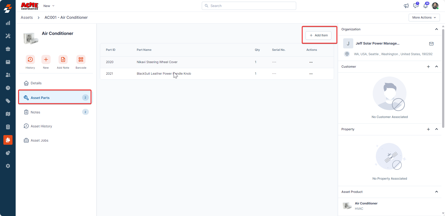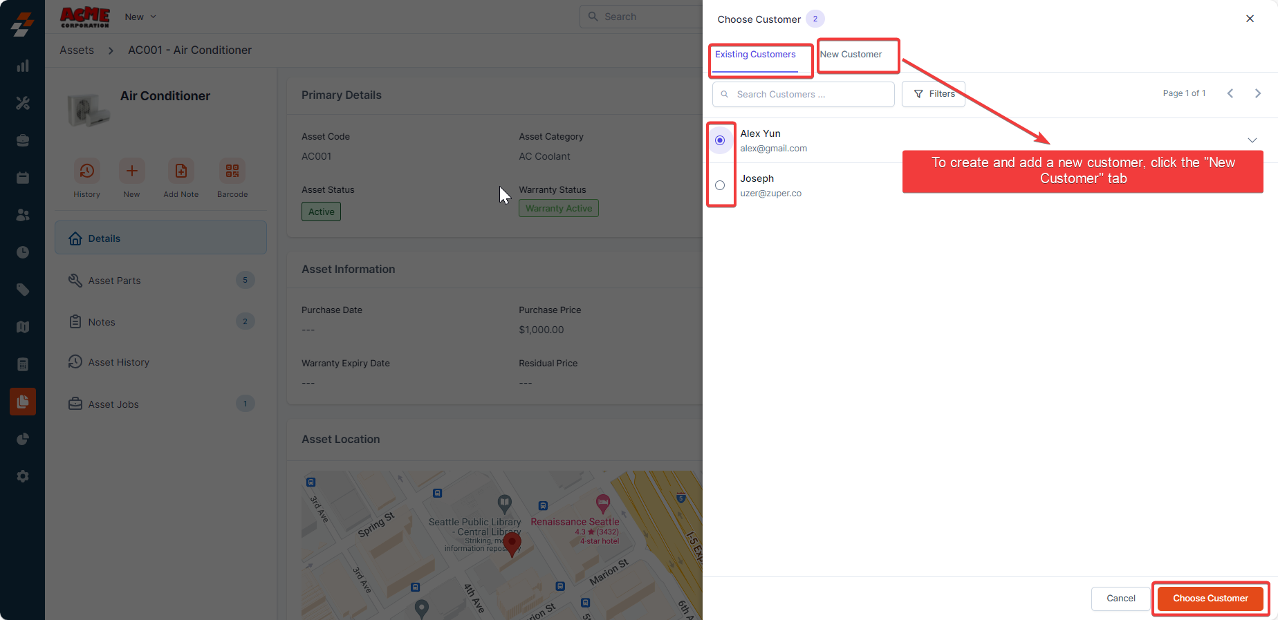 You can also share the asset details via email to the customer/organization or your email address for records. To do so, follow these steps: