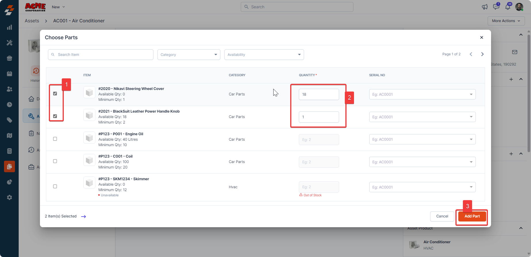 - Choose Part / Service (Optional Field): Select the relevant part/service from the drop-down list.