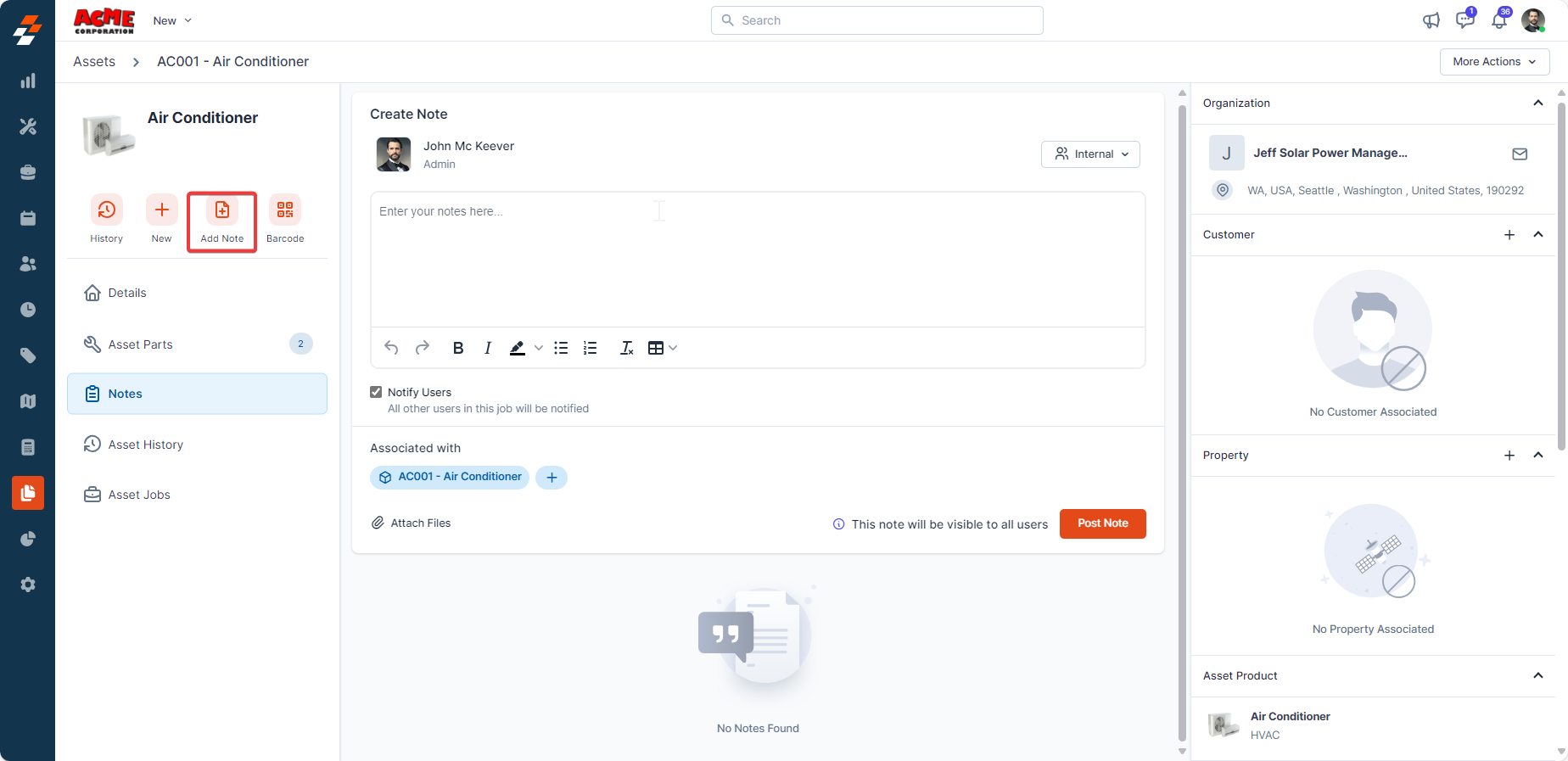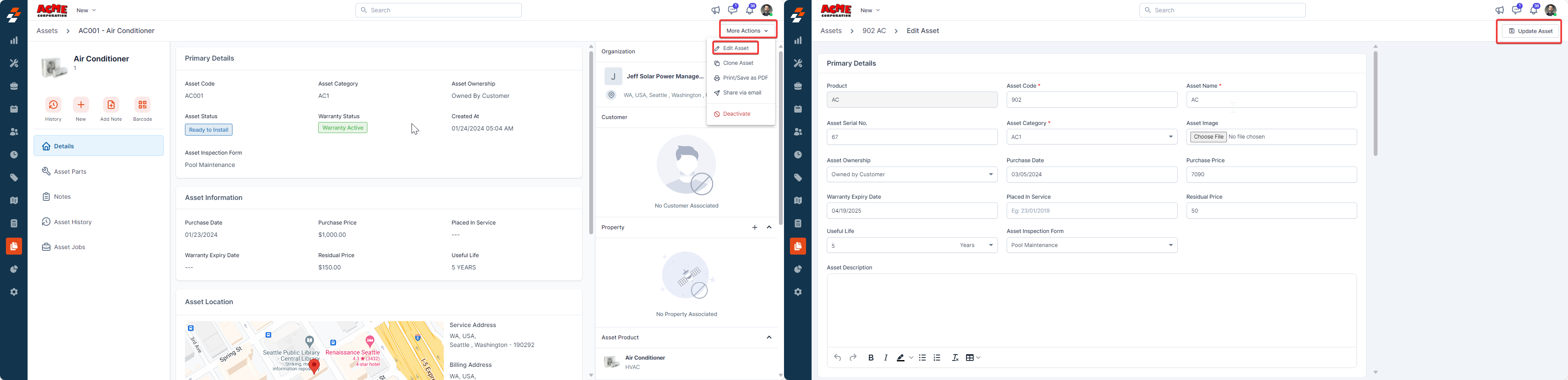 To update any of the asset details, click "Edit Asset". Make necessary changes to the asset and click "Update Asset" to save the changes.
