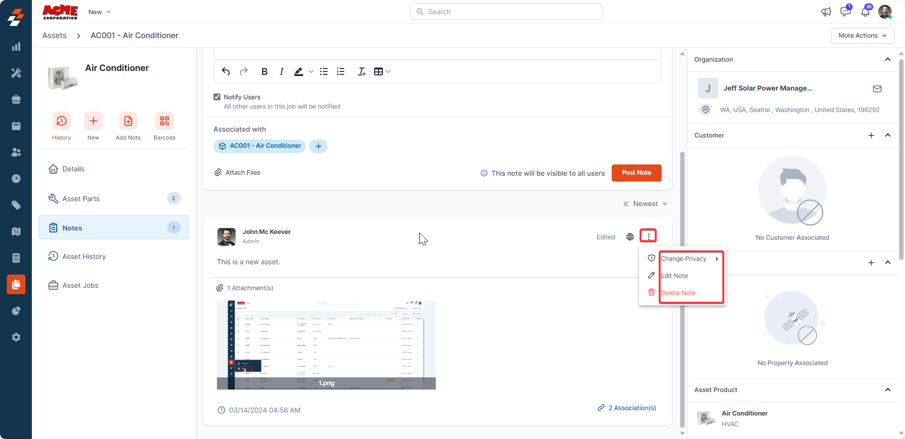 You can also delete an asset if no longer needed. However, to delete an asset, you first need to deactivate it. Once deactivated, click "Delete" under More Actions. The asset will be forever deleted from the inventory.
