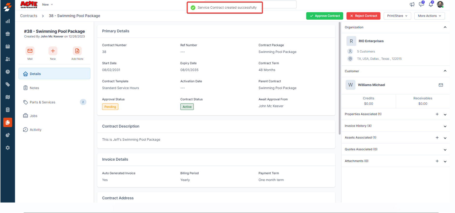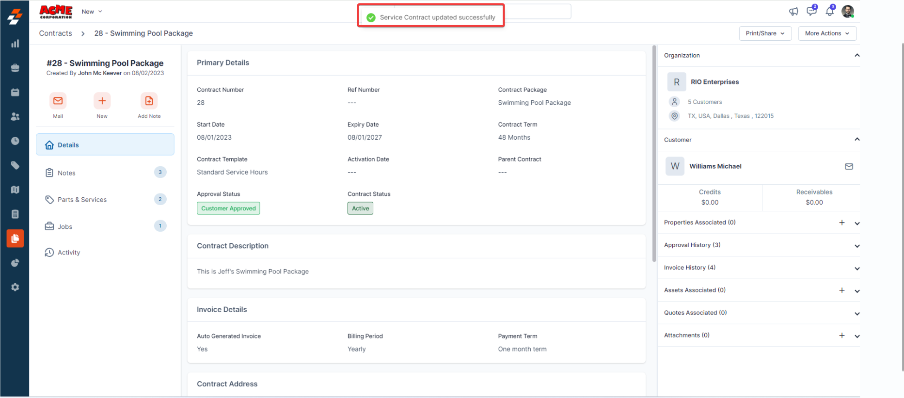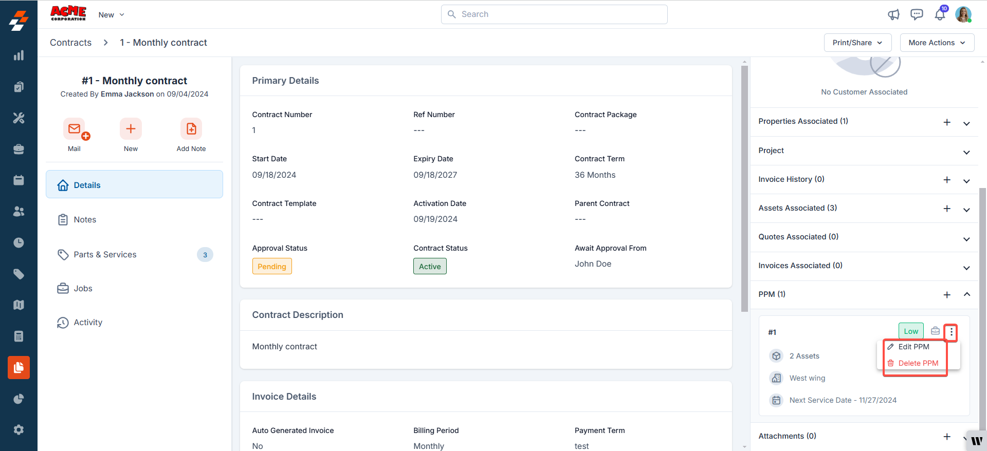 2. A new PPM will be created and added to the contract successfully. After creating a PPM, you can edit/delete as needed by clicking the kebab icon (