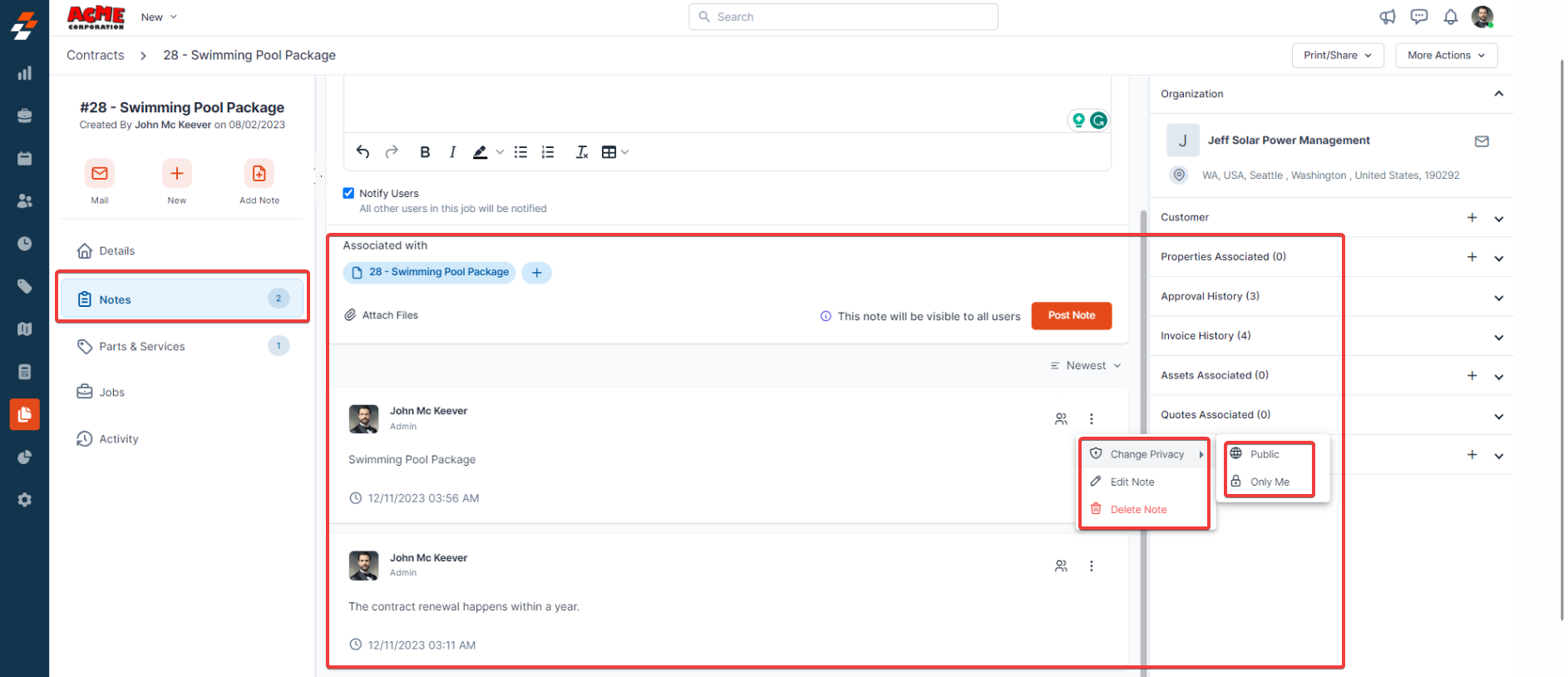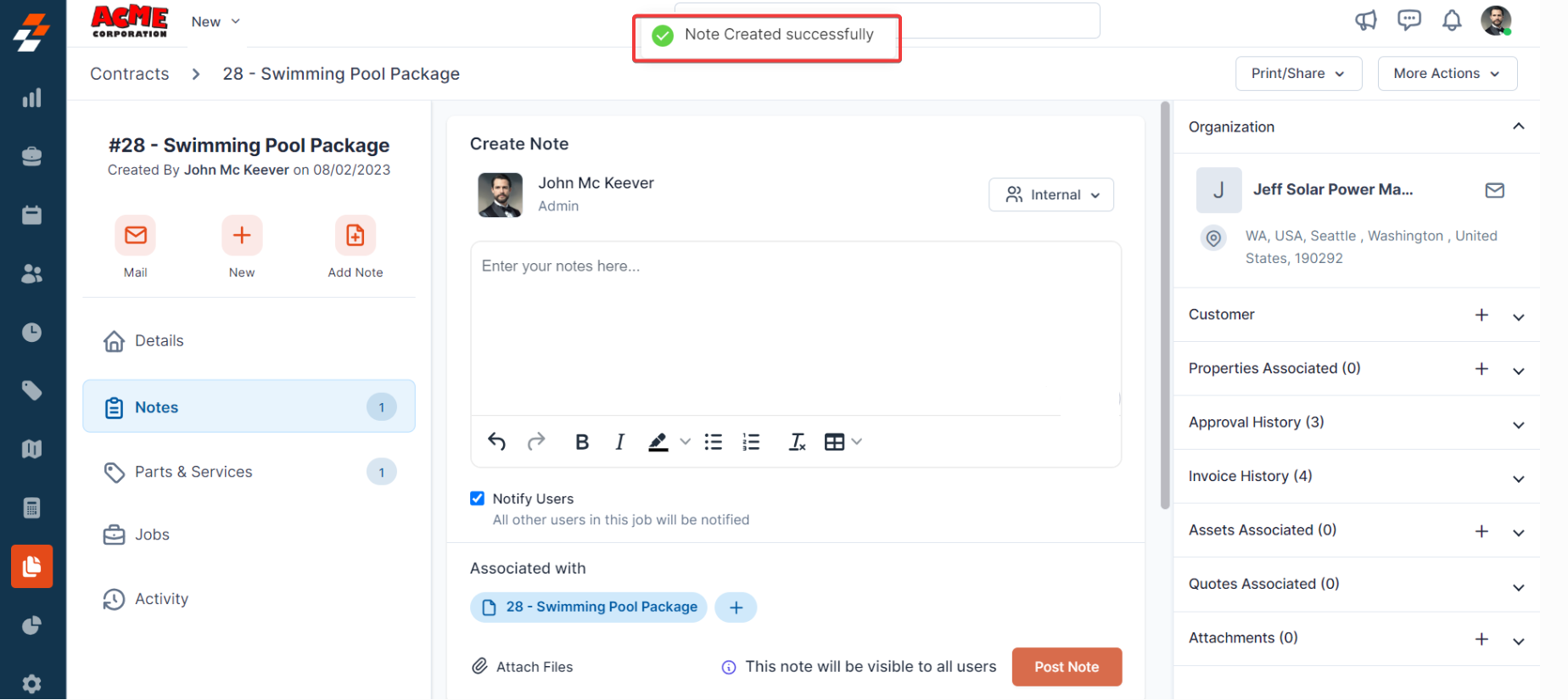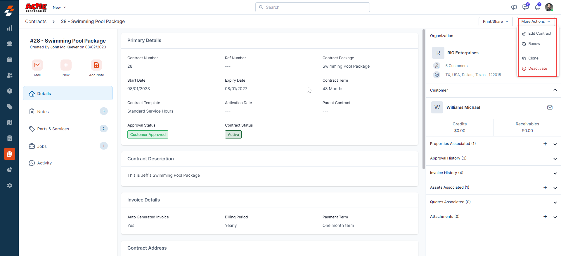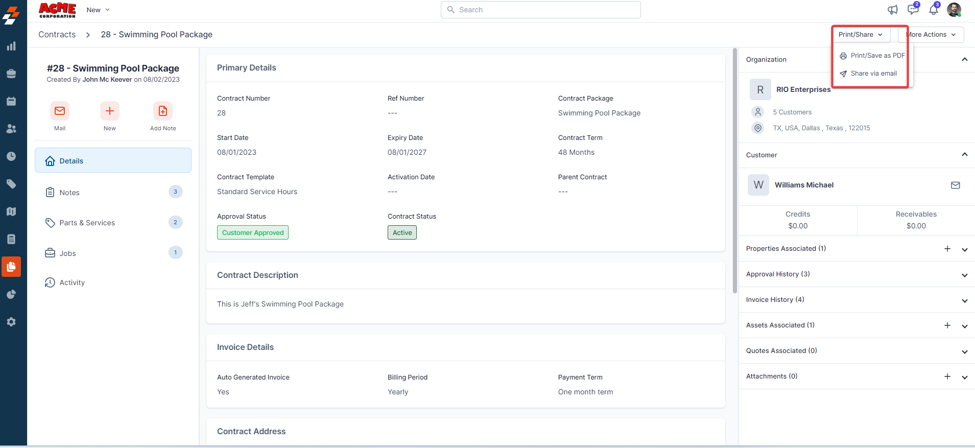 2. A new PPM will be created and added to the contract successfully. After creating a PPM, you can edit/delete as needed by clicking the kebab icon (