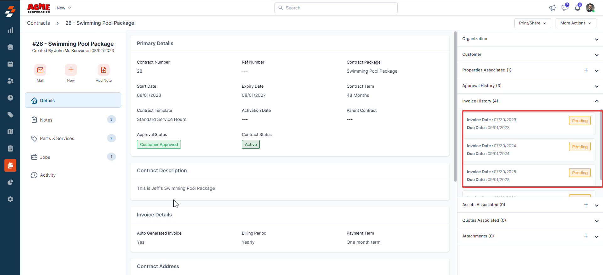 - Schedule Dates: These dates are automatically populated for upcoming schedules (service dates) based on the chosen recurrence.