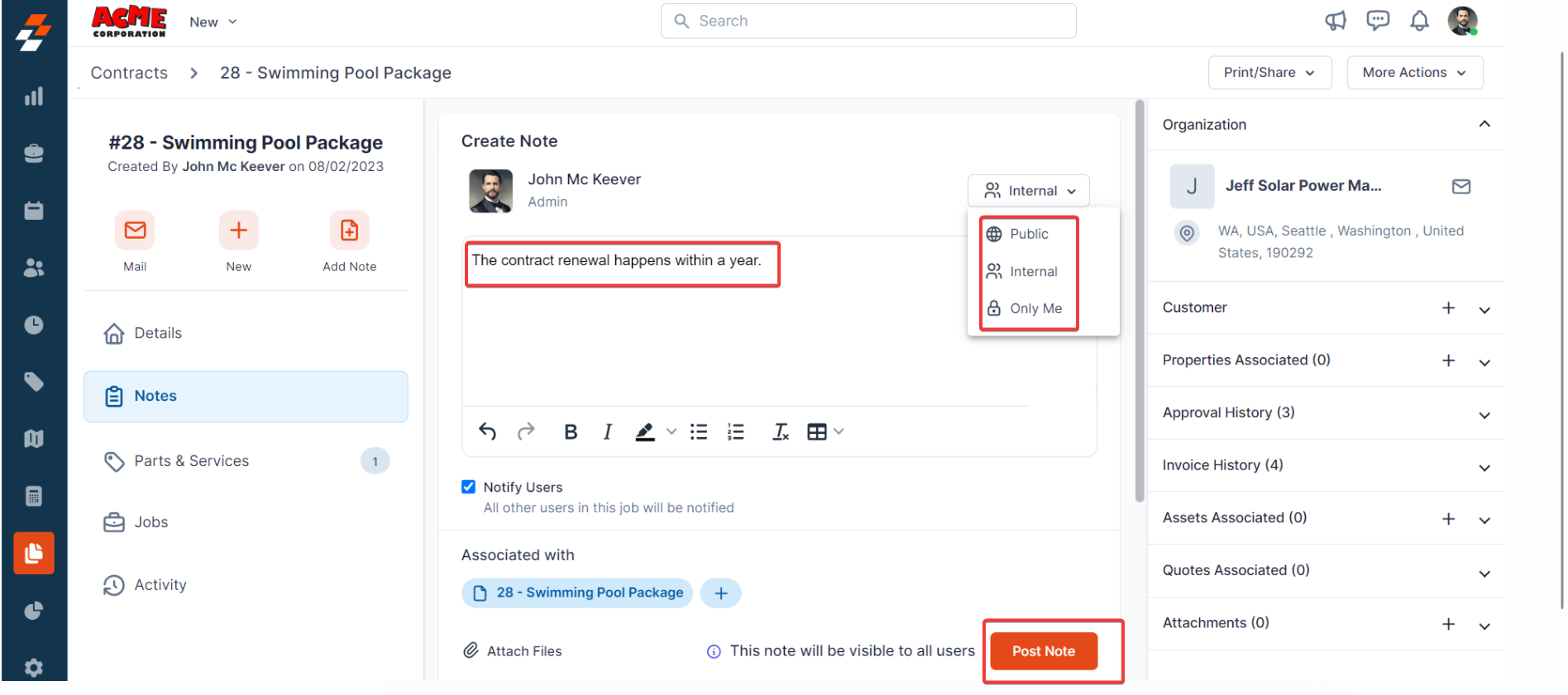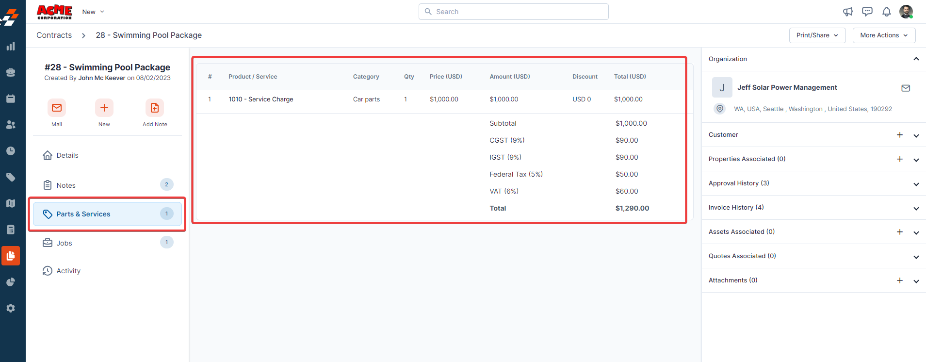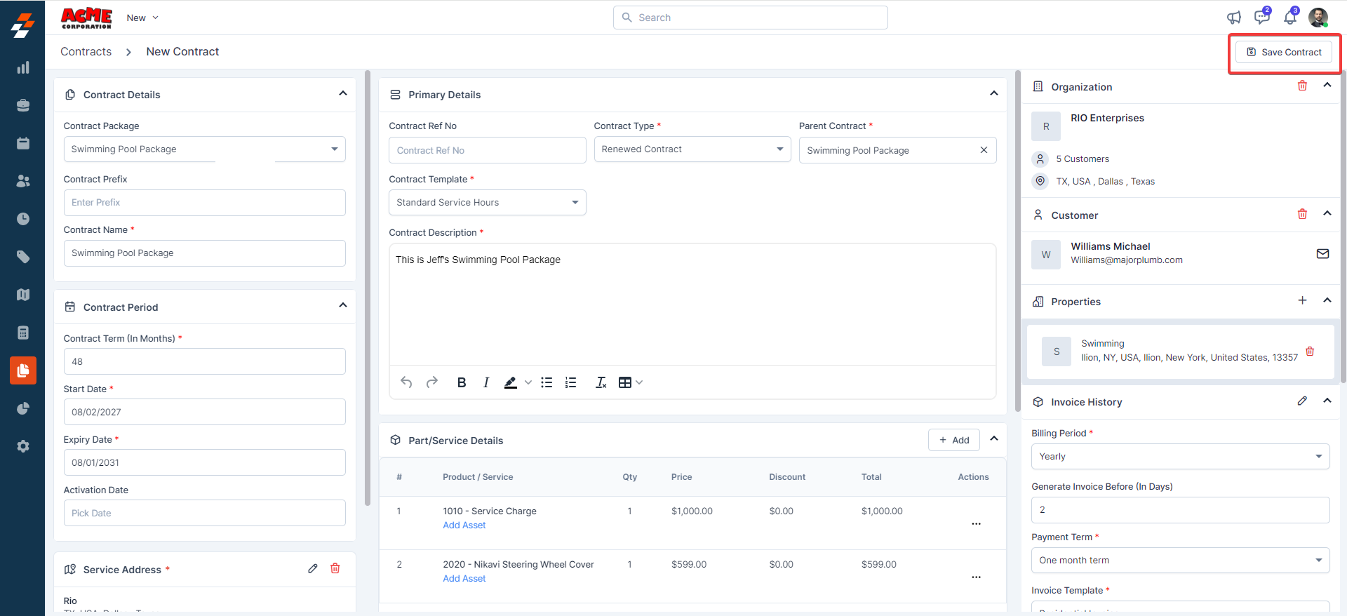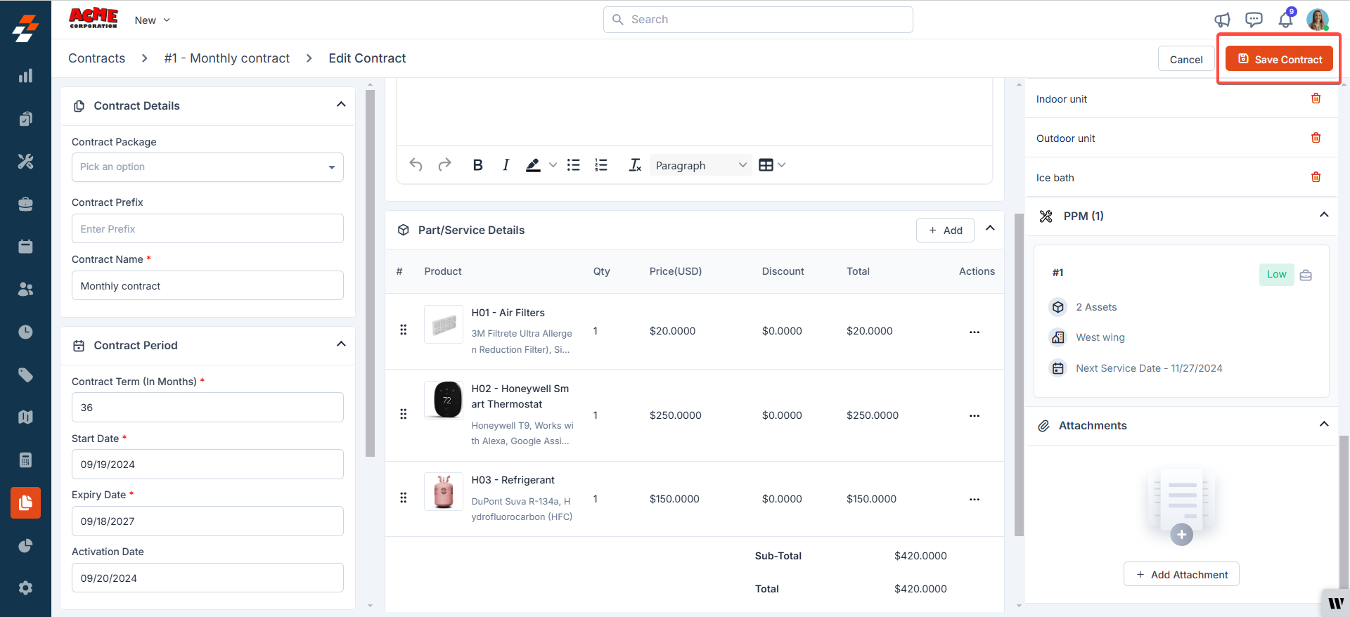 - Choose Part/Service (Optional): Select a part or service associated with the contract to include in the PPM.
