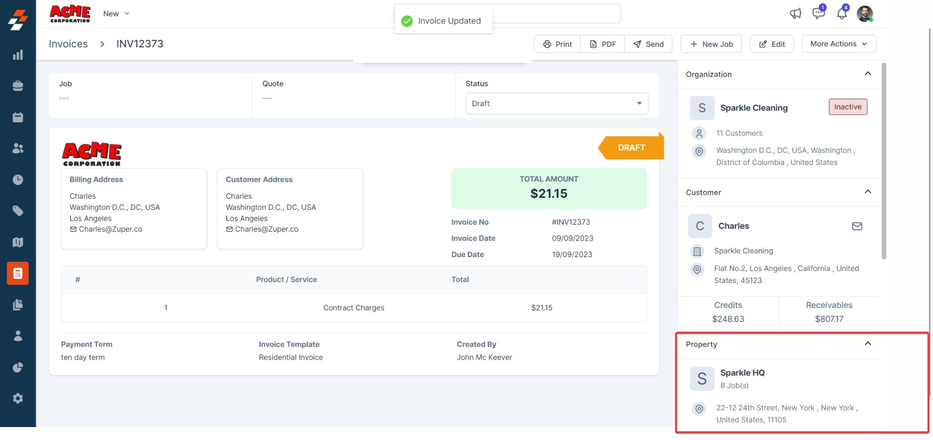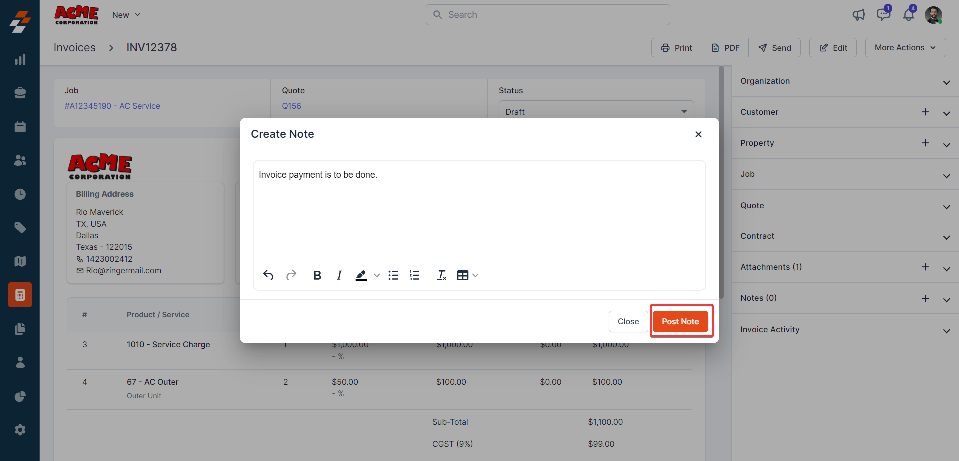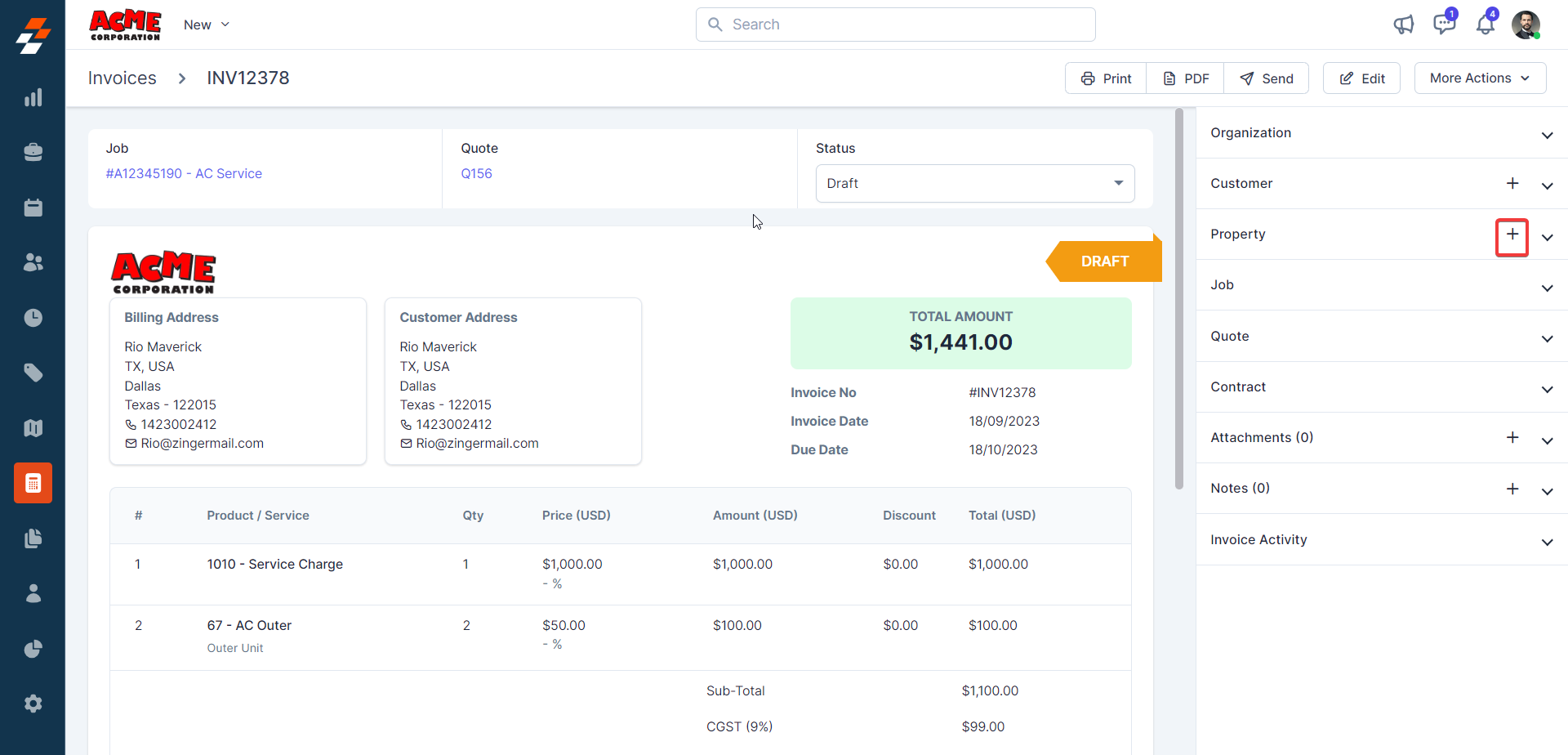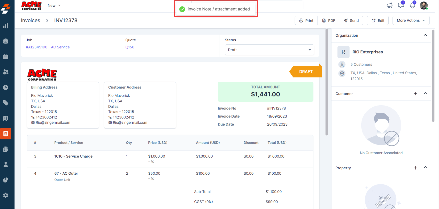 3. The customer details are linked to the invoice successfully.