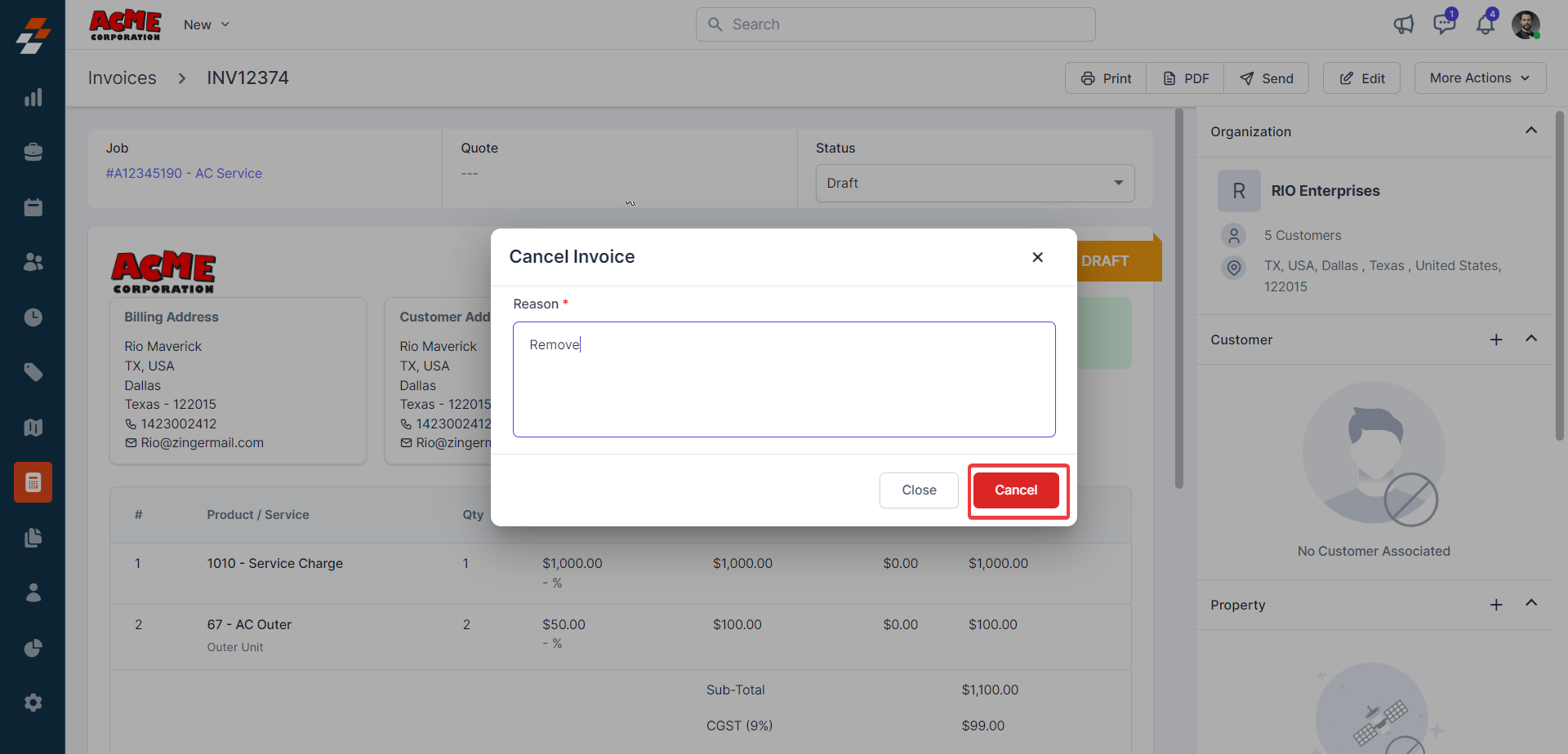 4. Click the "Send" button to share the invoice with the customer via email.
