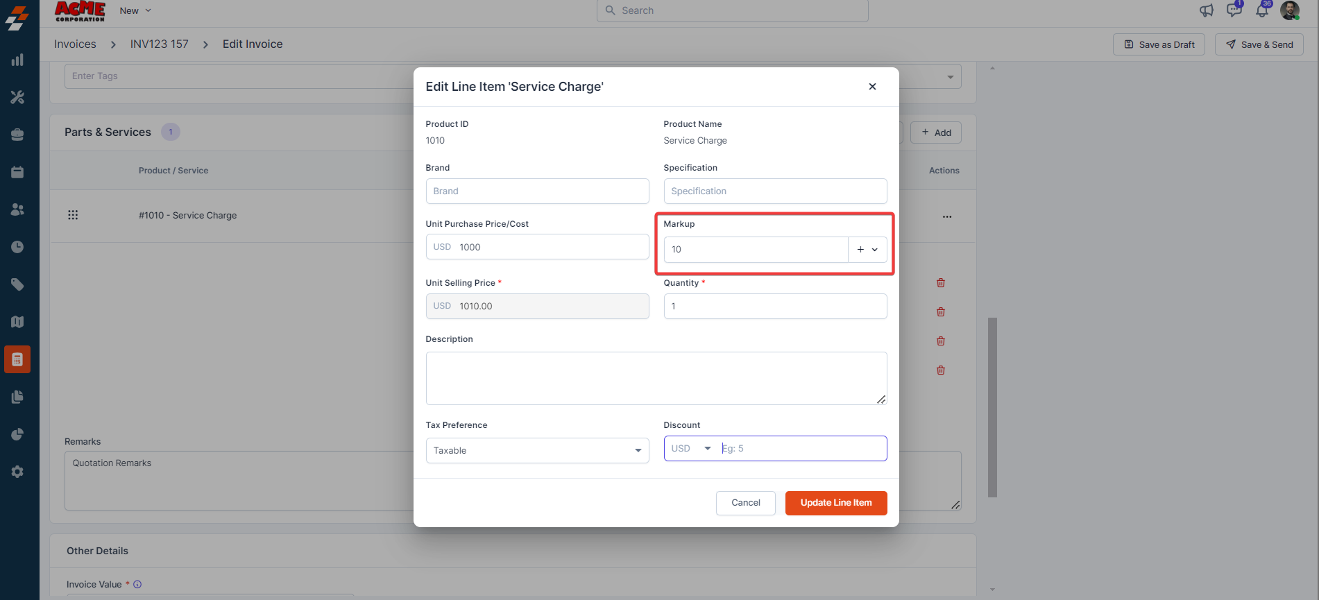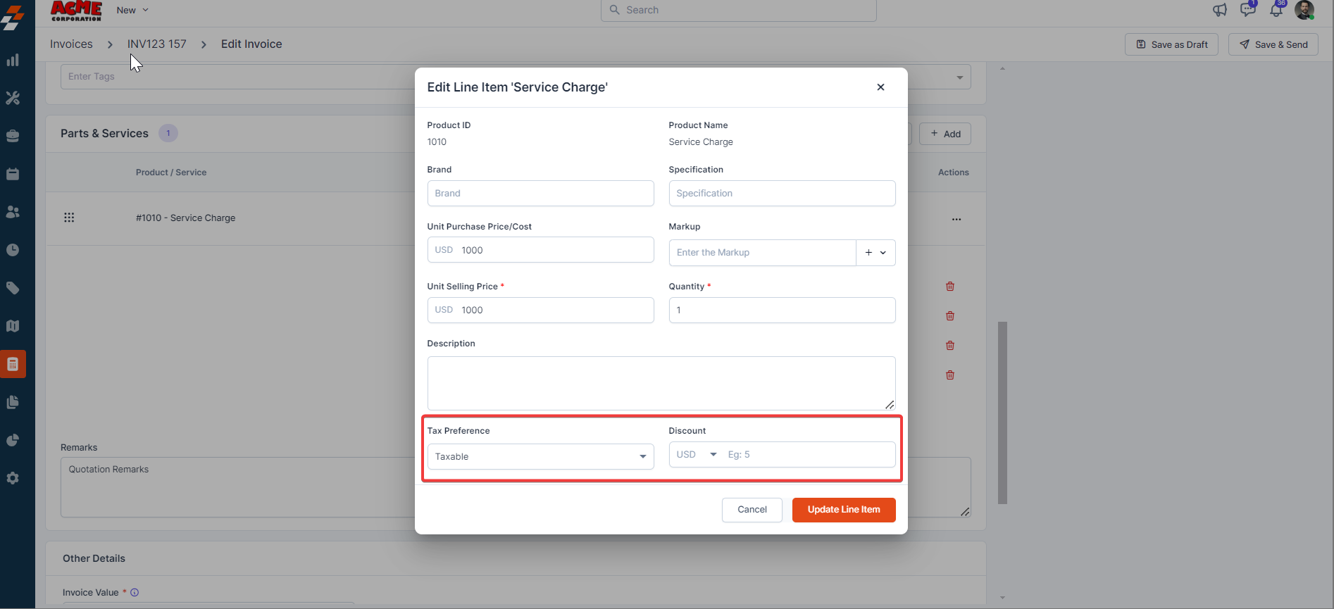 6. Click the "Edit" button to modify the invoice details.