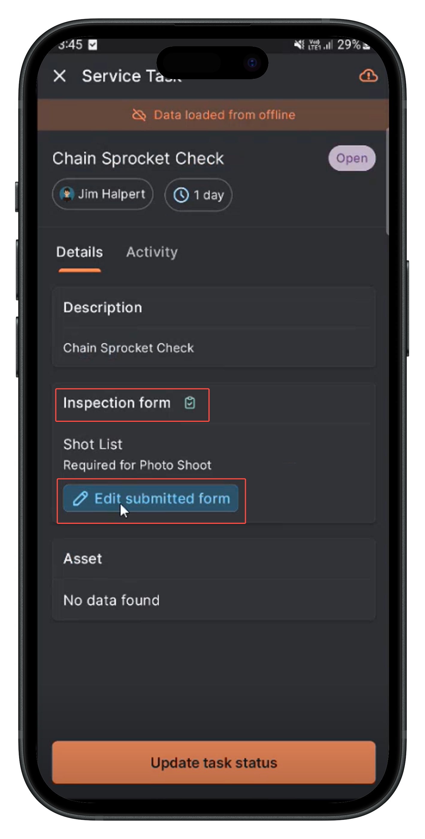 - View asset associated with the service task.