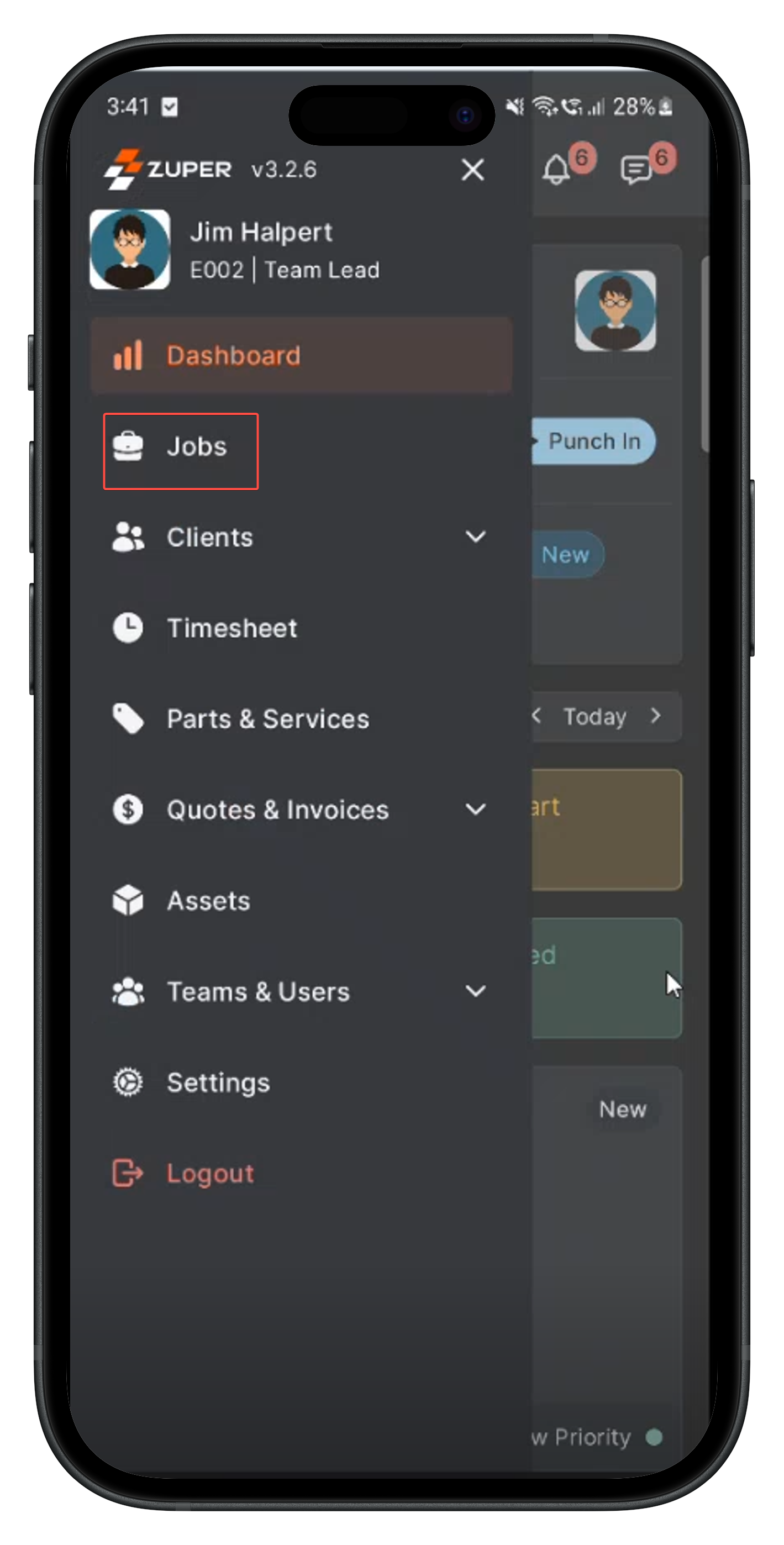 - Click the top-left “hamburger” icon and select "Jobs." You will see a list of assigned jobs scheduled within 7 days from the current date.