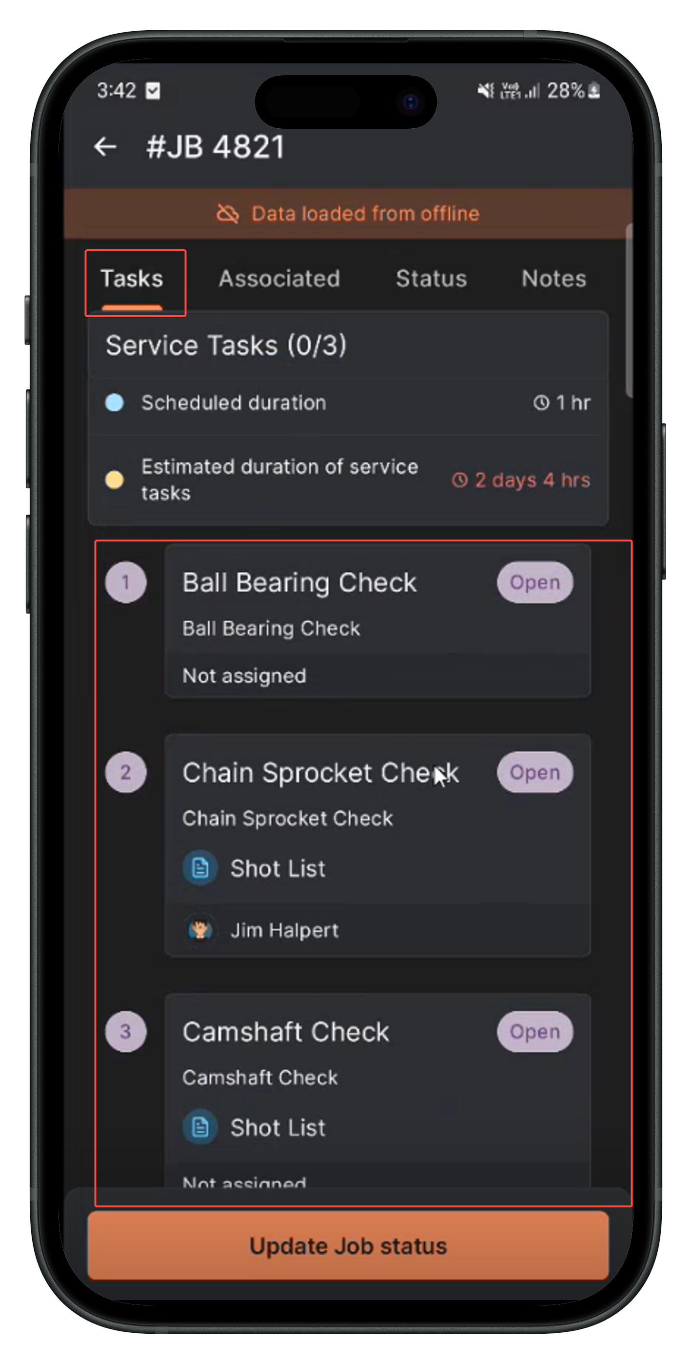 Note: To access jobs containing service tasks offline in the mobile app, the job must be scheduled within 7 days from the current date.