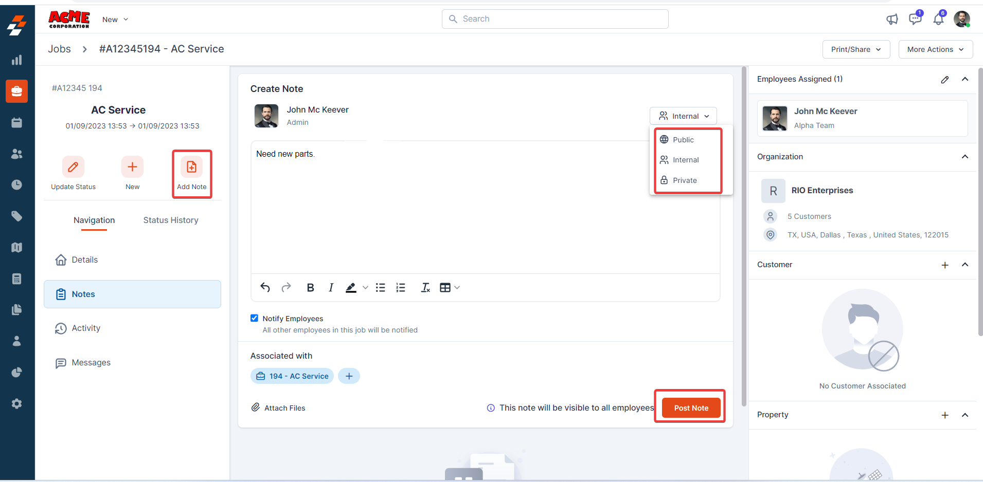 setting will help you make the note public to all, including the Customer.