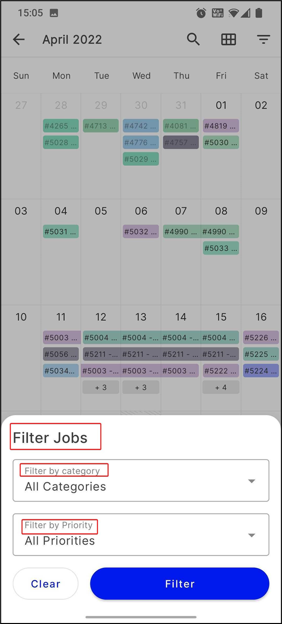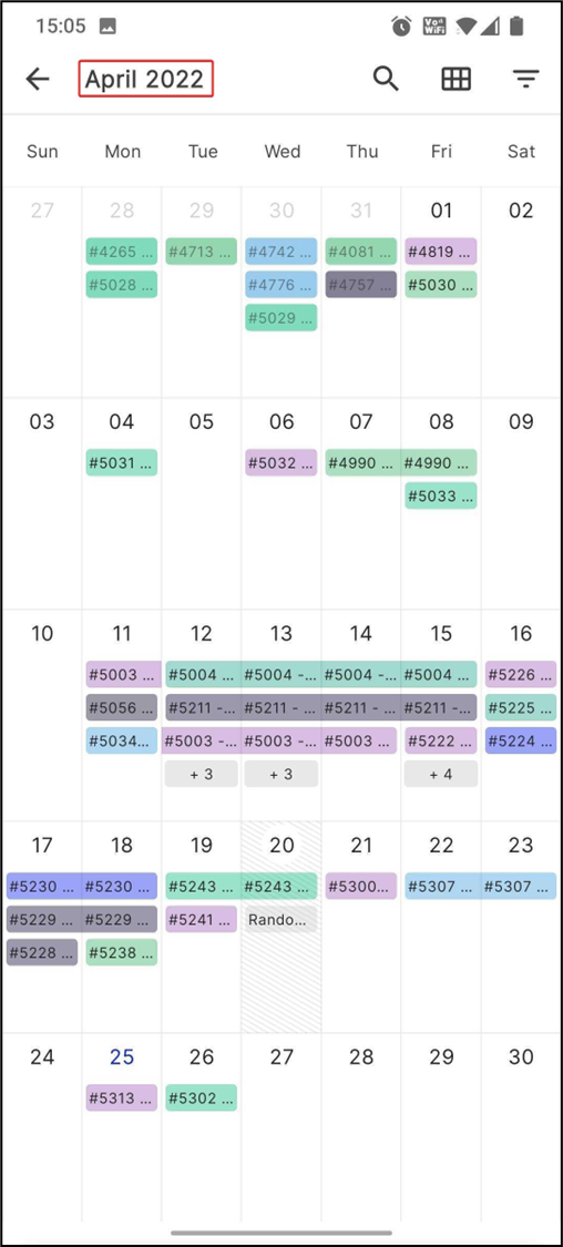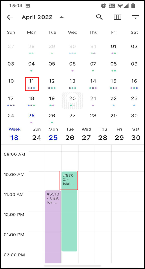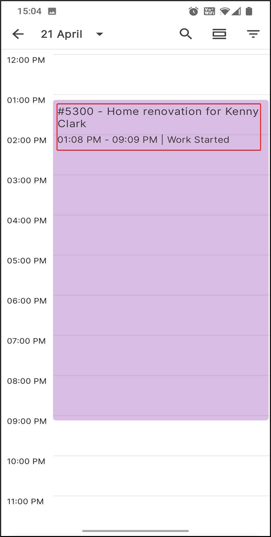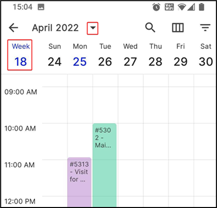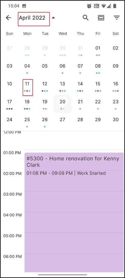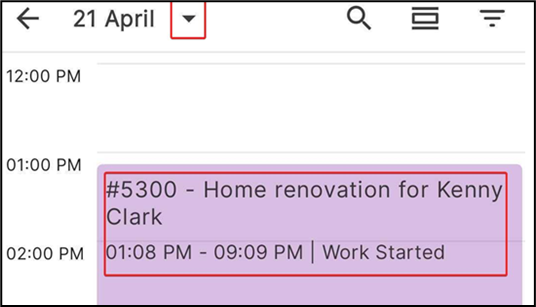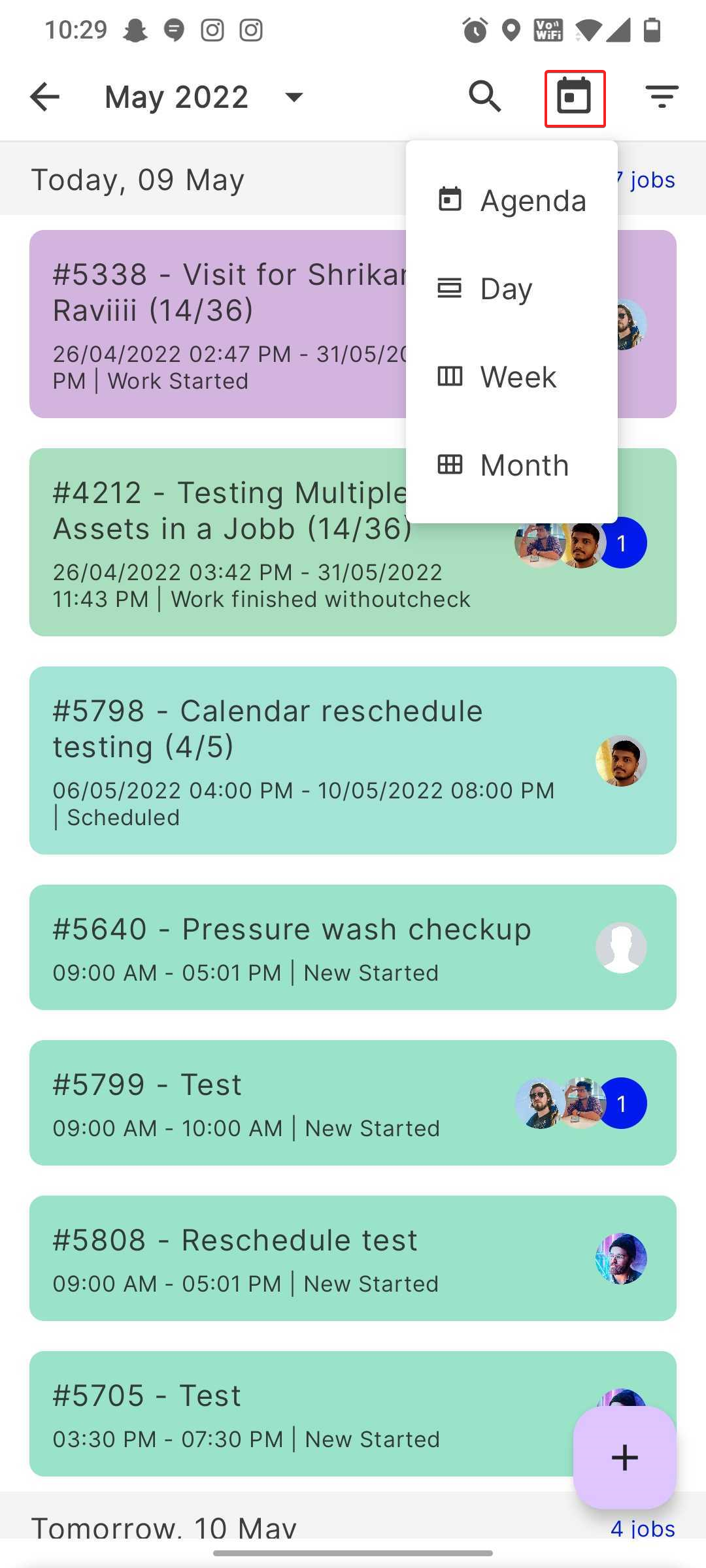 “Agenda” view shows the list of job events scheduled. Use the “Search” icon